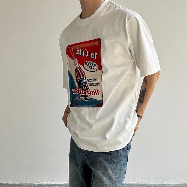 レトロテイストが目を引くグラフィック半袖Tシャツ。 襟ぐりのダメージ加工も全体のイメージに統一感を与えています。 ダメージデニムはもちろん、きれいめデニムを崩したスタイリングでスタイリッシュに! ■カラー ホワイト / ブラック ■サイズ M 肩幅:52cm 胸囲:116cm 着丈:68.5cm 袖丈:25cm L 肩幅:53cm 胸囲:120cm 着丈:70.5cm 袖丈:25.5cm XL 肩幅:54cm 胸囲:124cm 着丈:72.5cm 袖丈:26cm 2XL 肩幅:55cm 胸囲:128cm 着丈:74.5cm 袖丈:26.5cm *モデル身長175cm、Mサイズ着用 *採寸方法により1-3cmの誤差がある場合がございます ■素材 コットン Diagem のInstagramを是非フォローお願いいたします ▷https://www.instagram.com/diagem_official_jp/?hl=ja \\ \ HOT Items はこちら / // https://official.diagem.shop/categories/5952058 // / \ \\ < 注意事項 > *商品を購入する前にこちらの【ShopAbout】をご了承の上お買い求めください。 https://official.diagem.shop/blog/2024/05/27/033024 *Diagemはお客様からのご注文を受け、「1点1点お客様の商品を製作・取り寄せ」させていただいております。 *そのため発送までに「1-4週間ほど」お時間をいただきます。余裕をもってのお買い求めをお願い致します。 *ご覧いただいているPCやスマートフォンの画面により実物と多少色合いが異なる場合がございます。 *海外製品のため日本とは製造基準が異なります。ご理解のうえご購入ください。 *イメージ違いやサイズ違い等、その他お客様都合によりますキャンセル・返品交換はご遠慮ください。