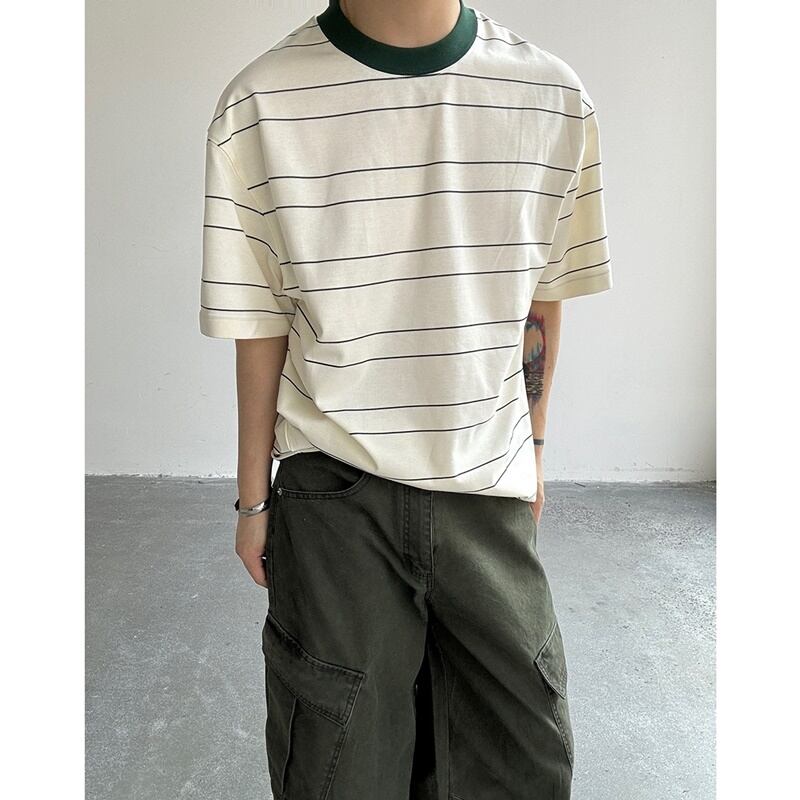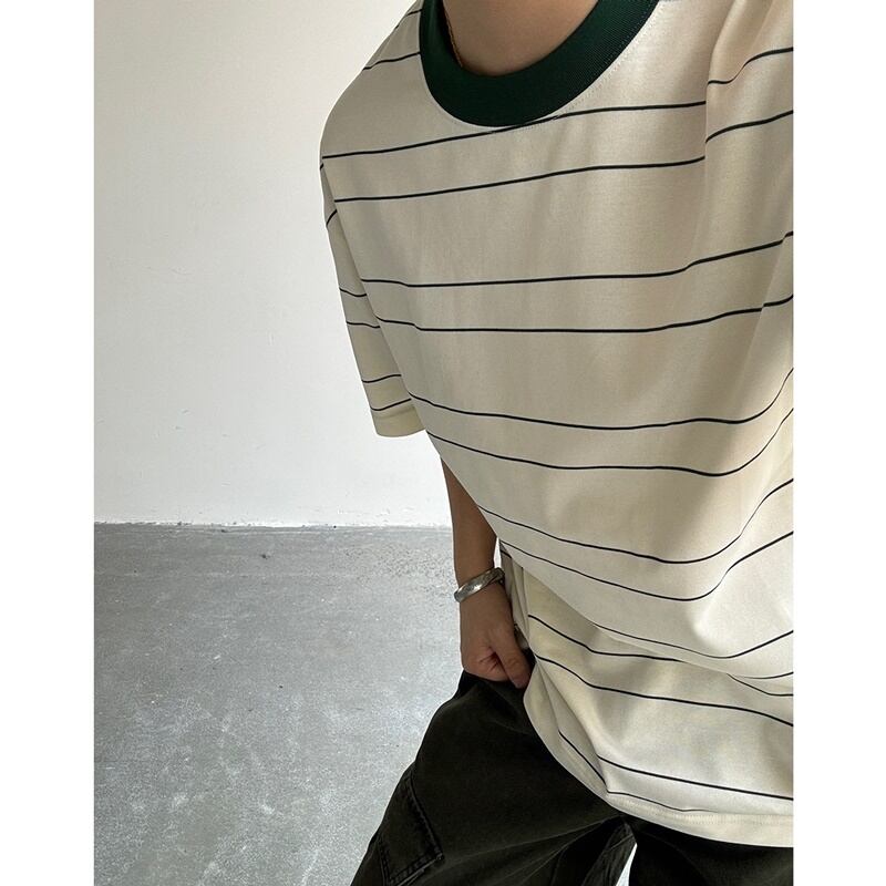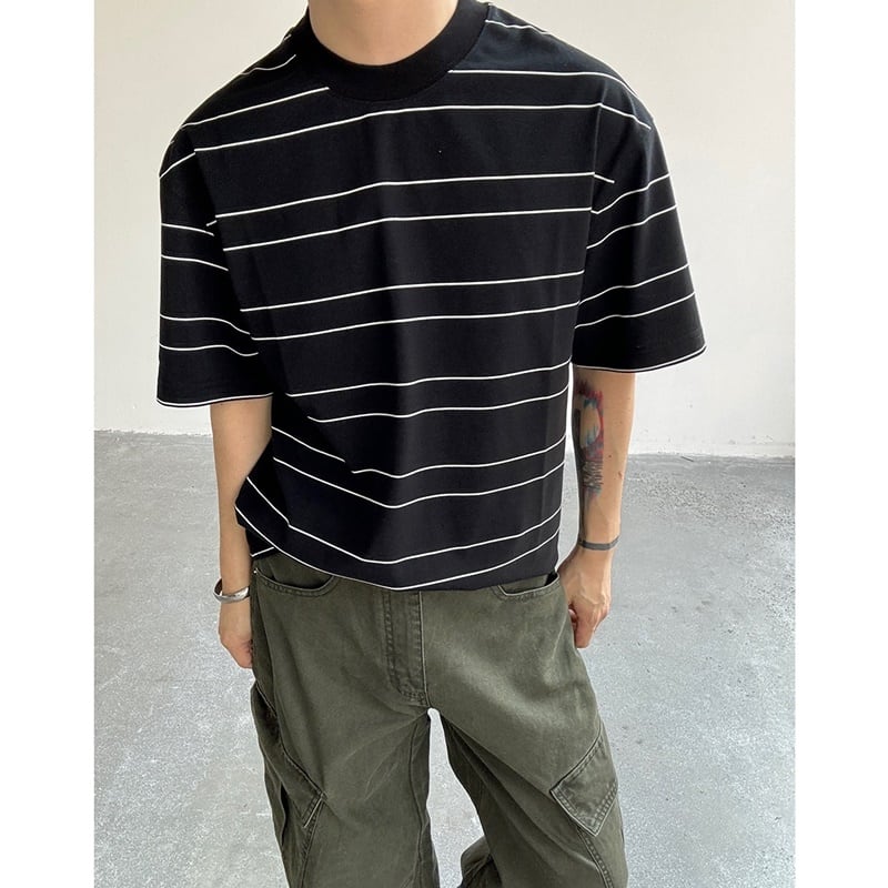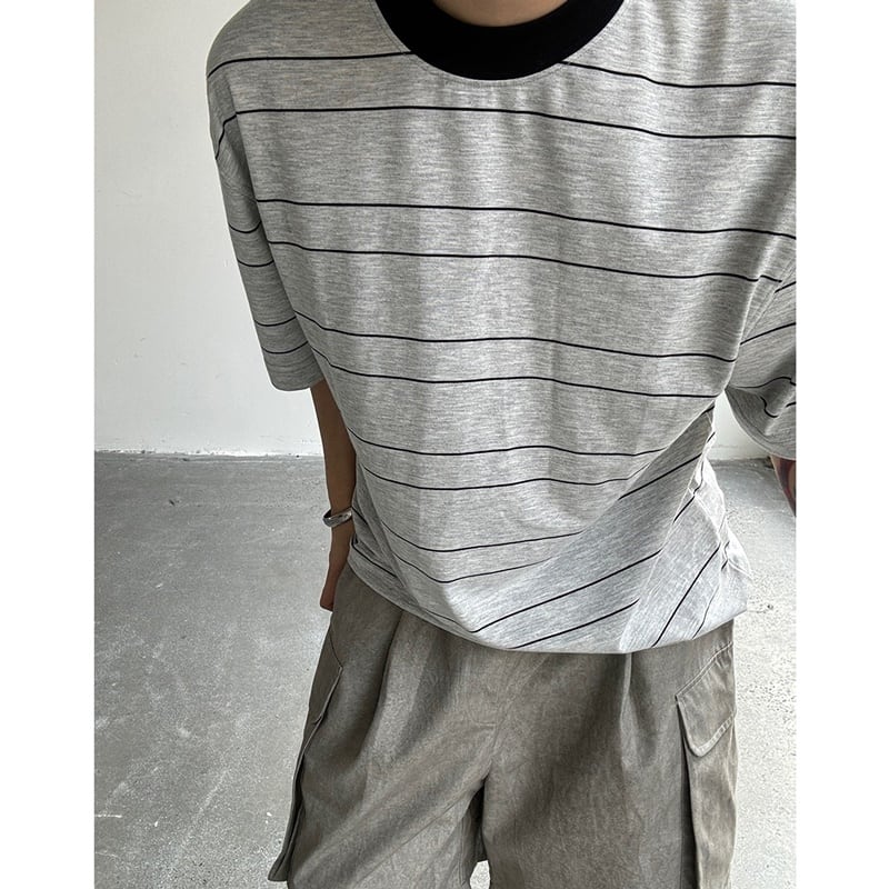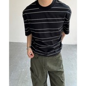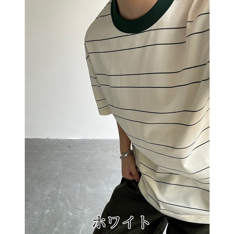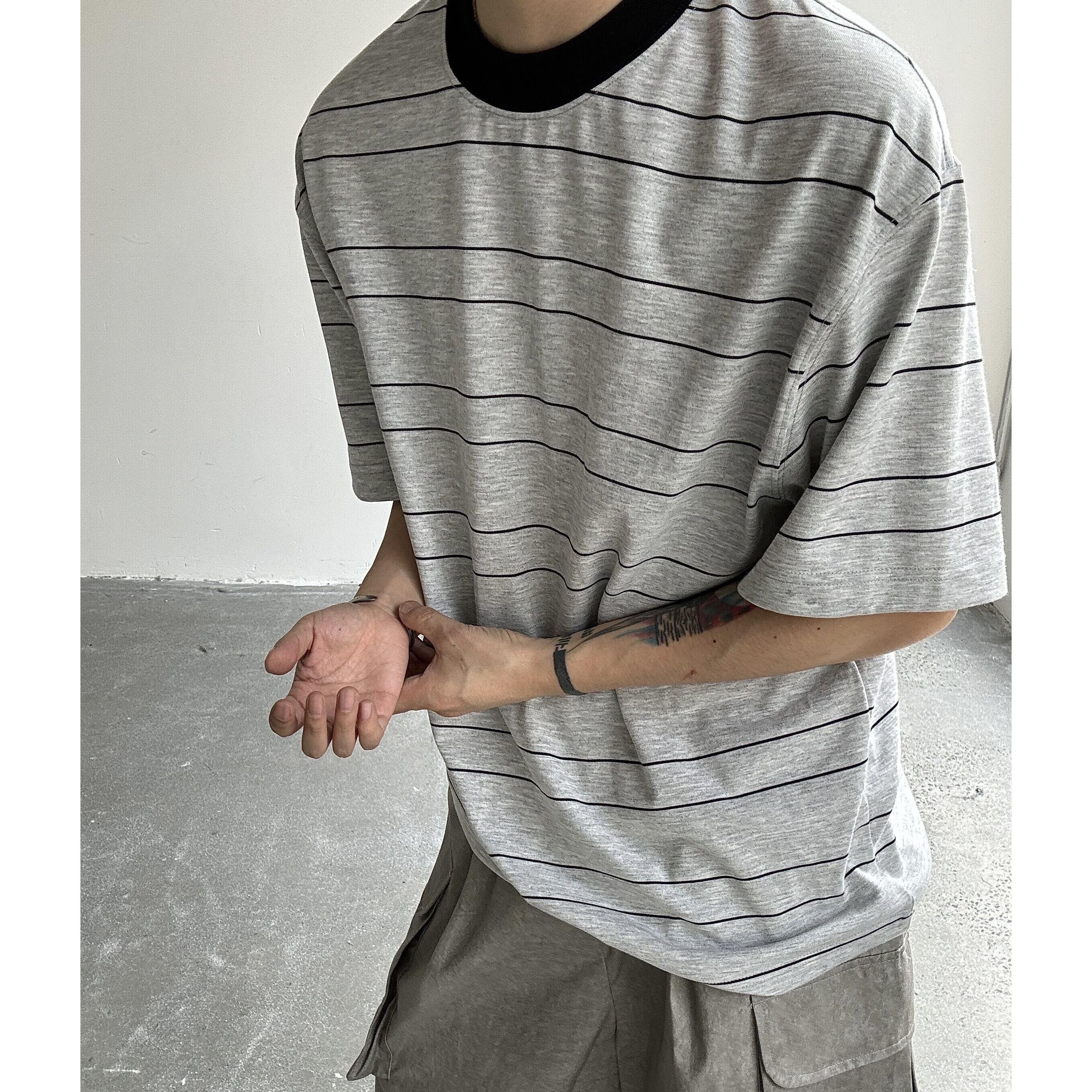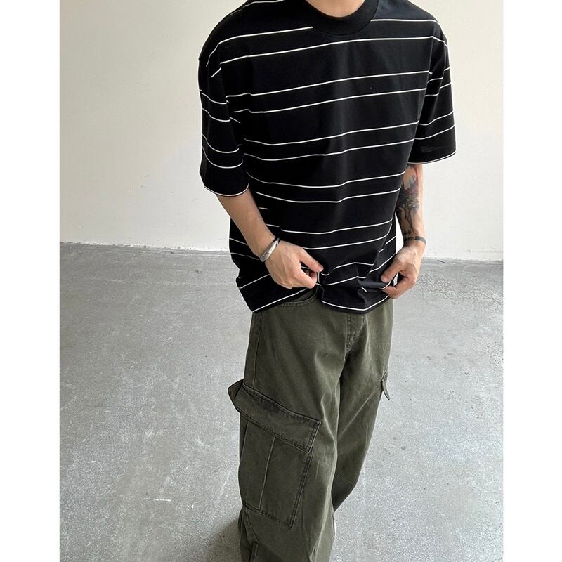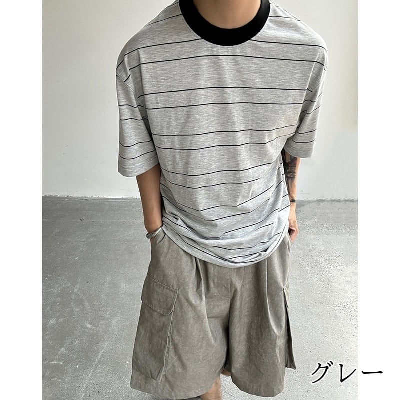 細いラインとのコントラストがこだわりのボーダー柄がクールな印象の半袖Tシャツ。