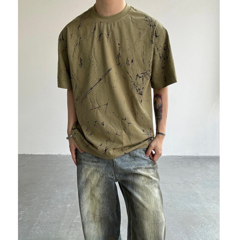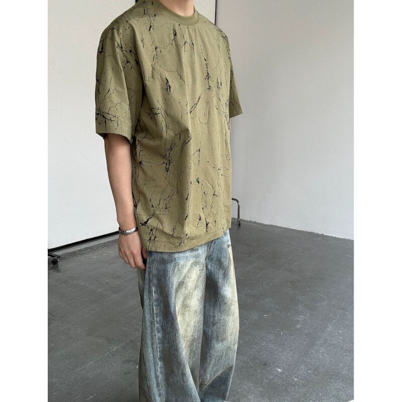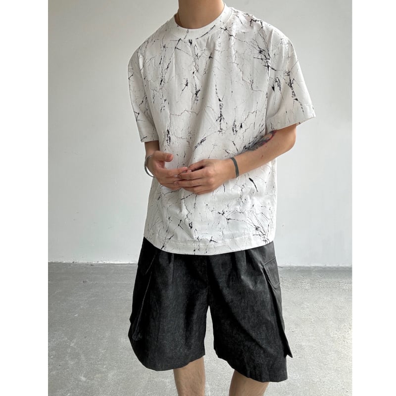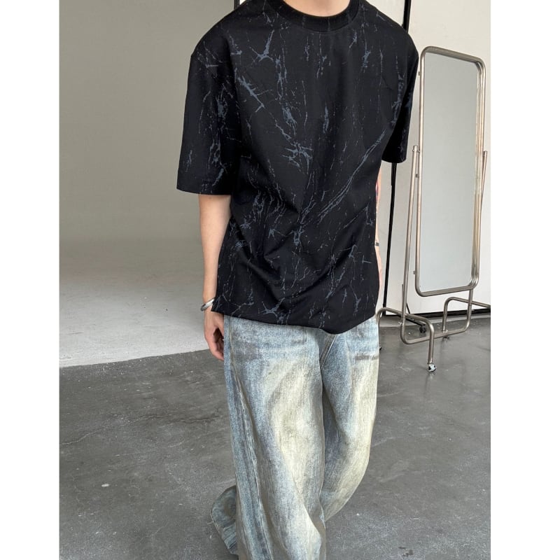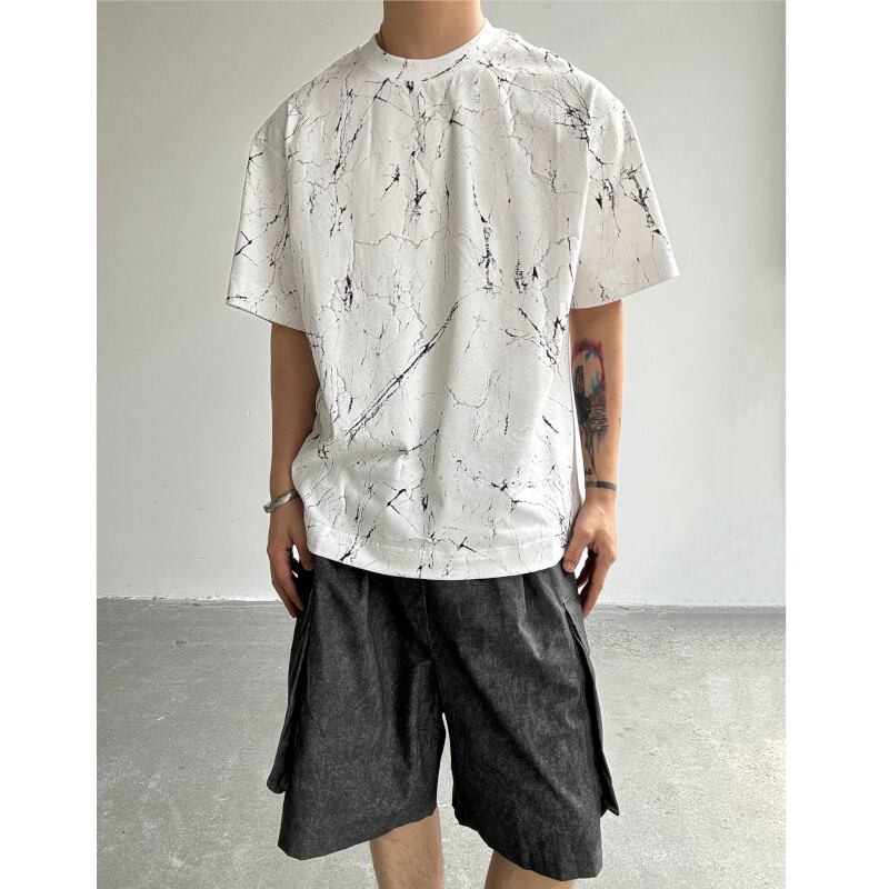 大理石柄がシンプルカラーに映える半袖Tシャツ。