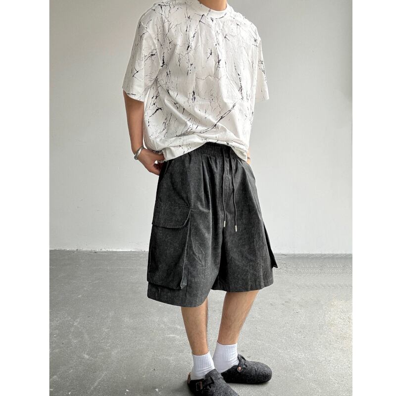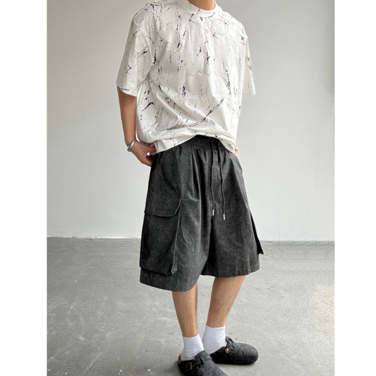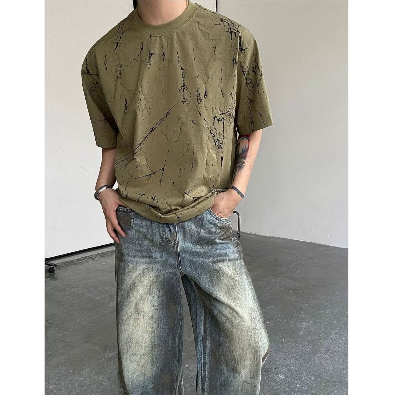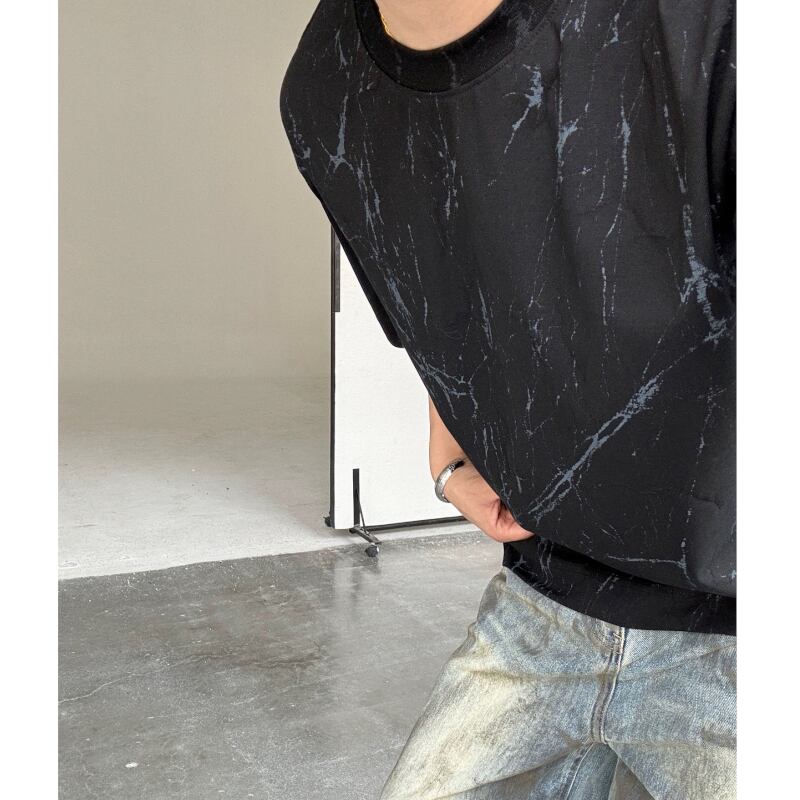 大理石柄がシンプルカラーに映える半袖Tシャツ。