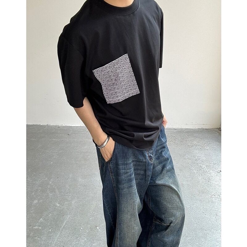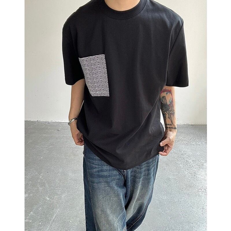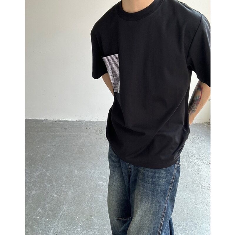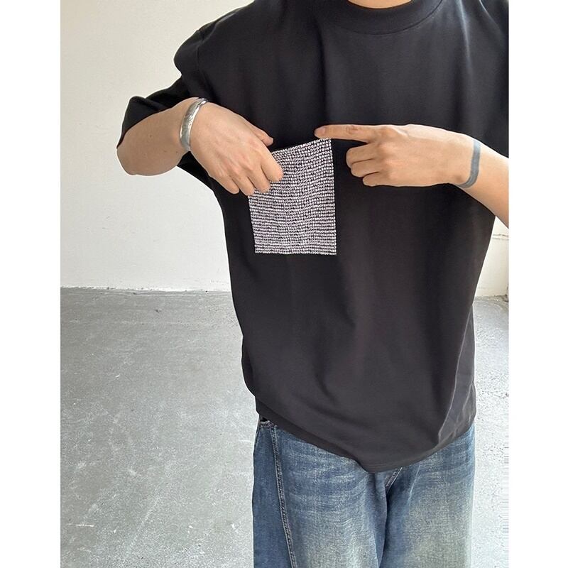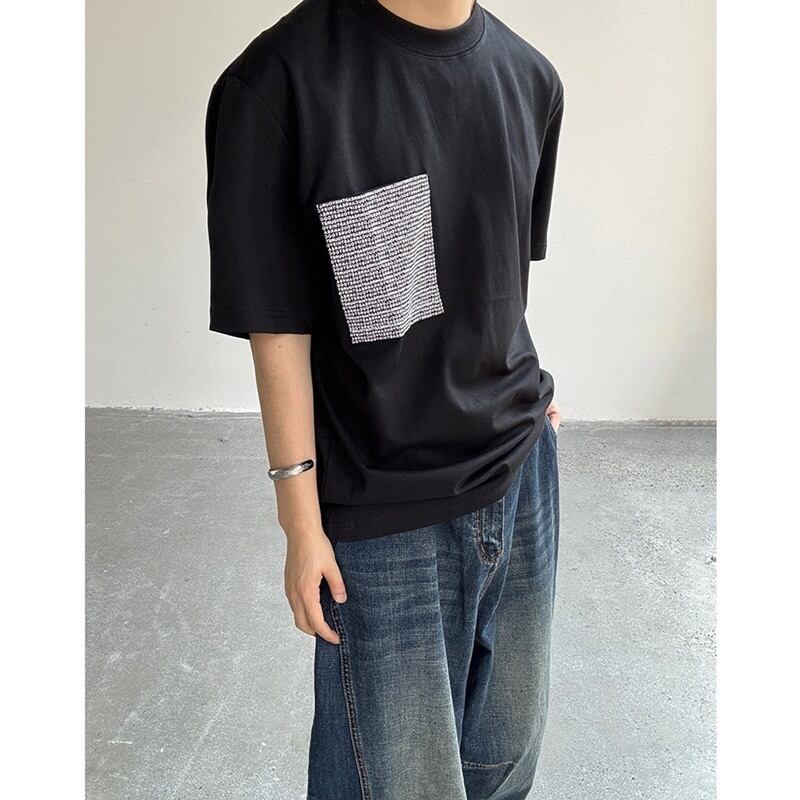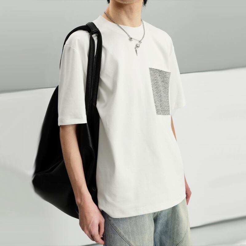 黒地に映えるホワイトのレタープリントが大きな胸ポケットに映えるオシャレな半袖Tシャツ。