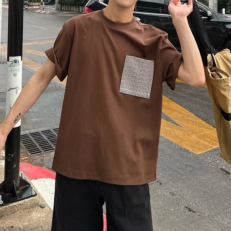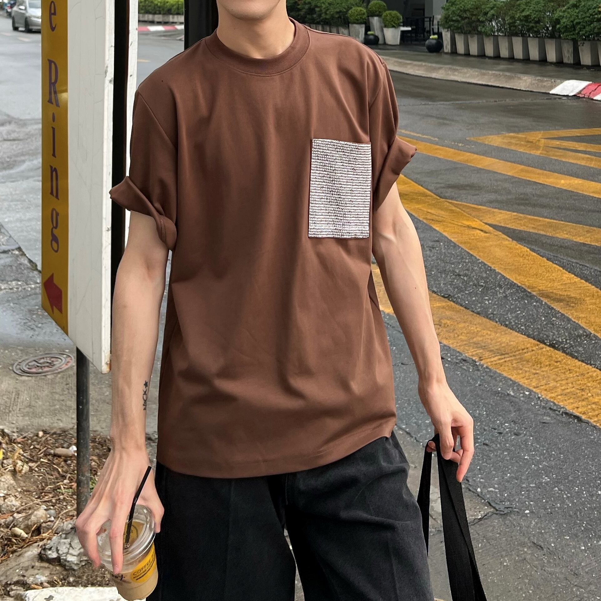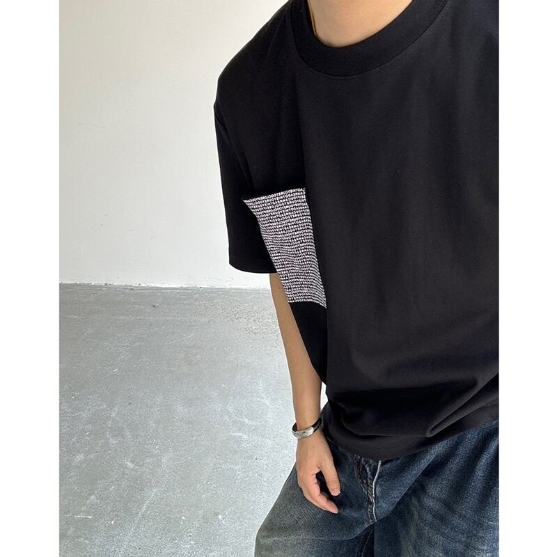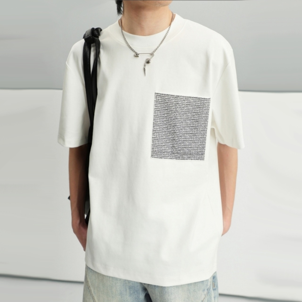黒地に映えるホワイトのレタープリントが大きな胸ポケットに映えるオシャレな半袖Tシャツ。