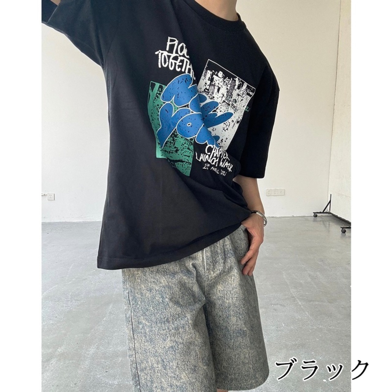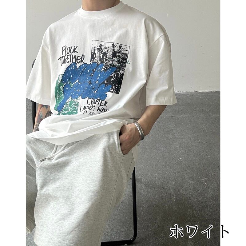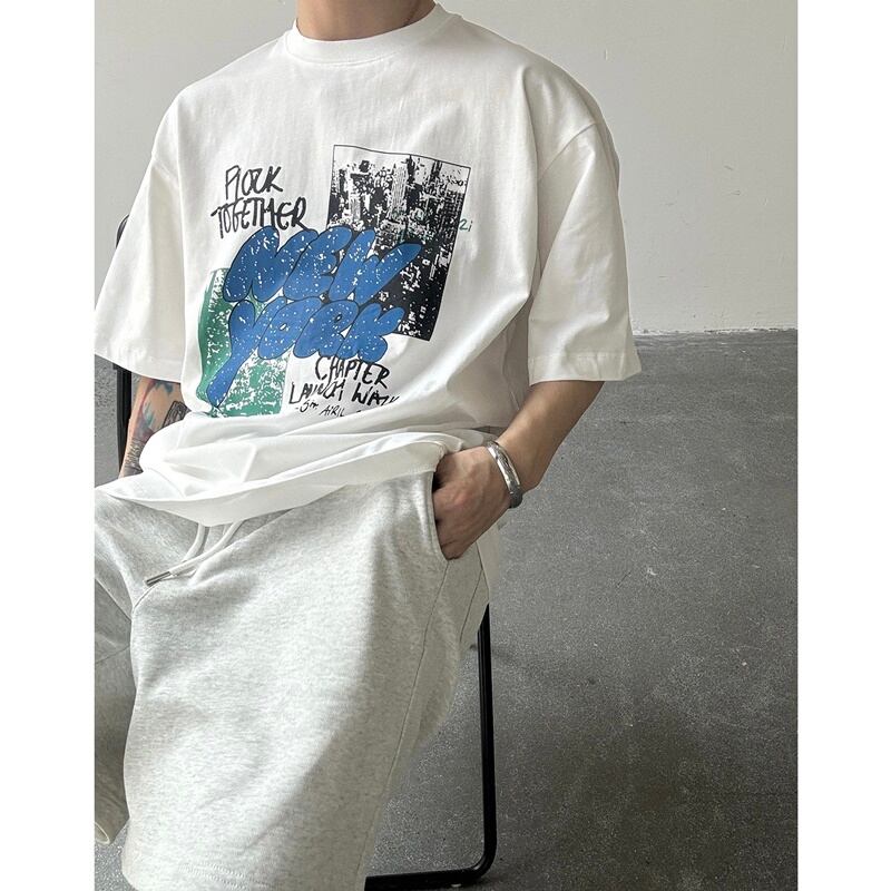 ストリートペイント風ロゴがインパクトある半袖Tシャツ。