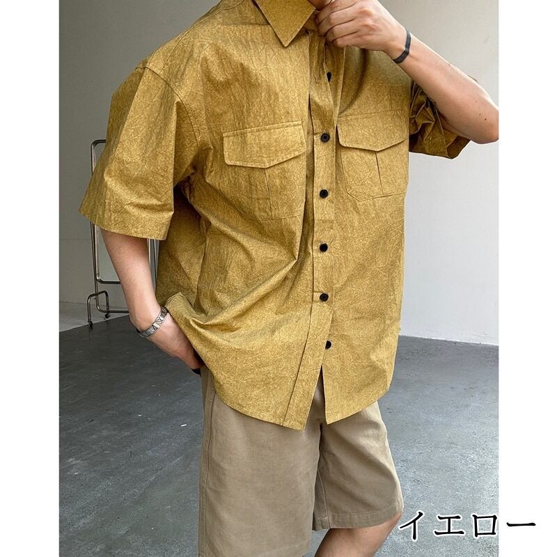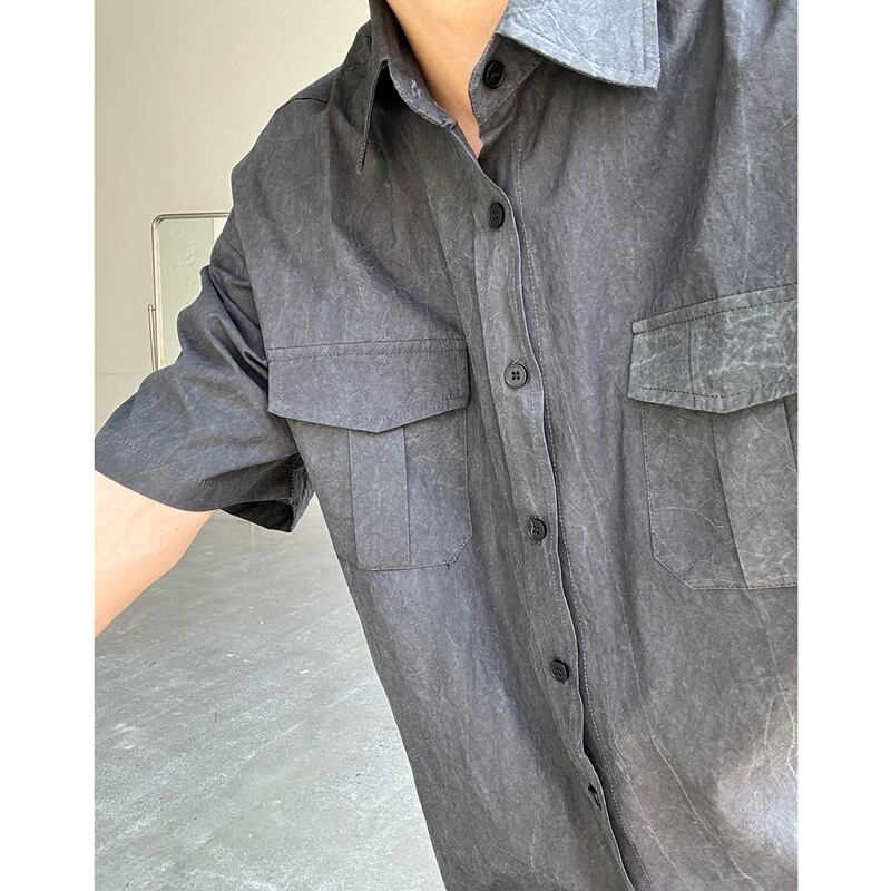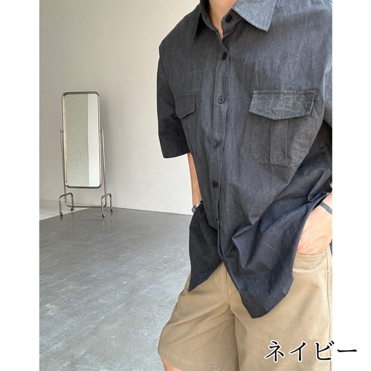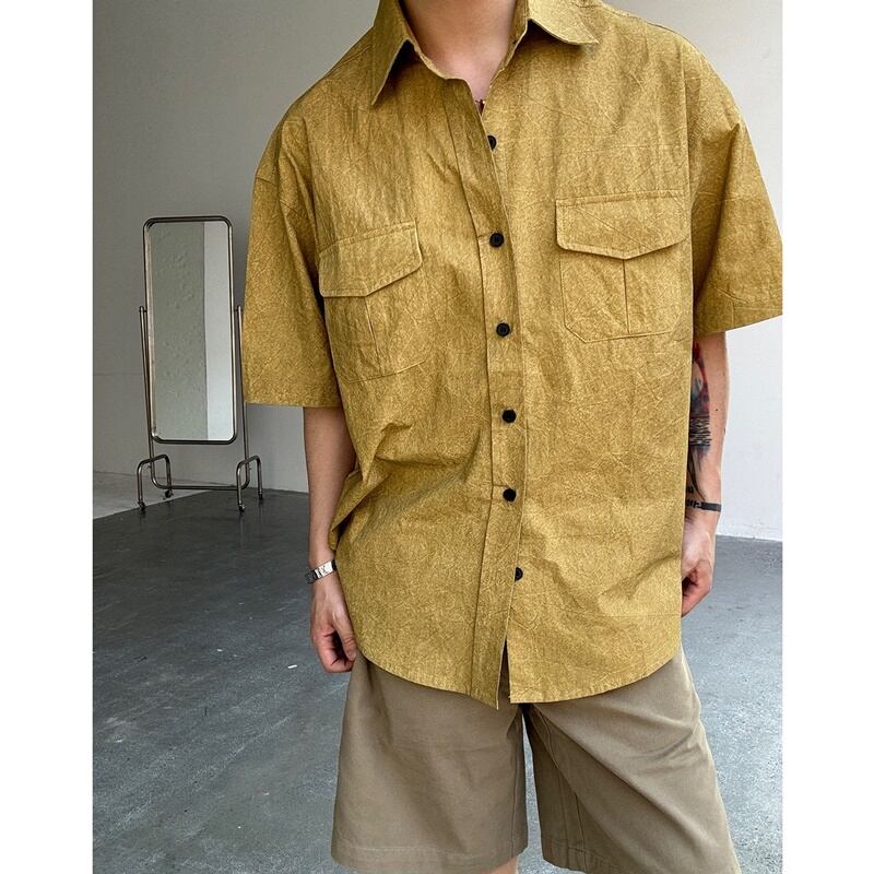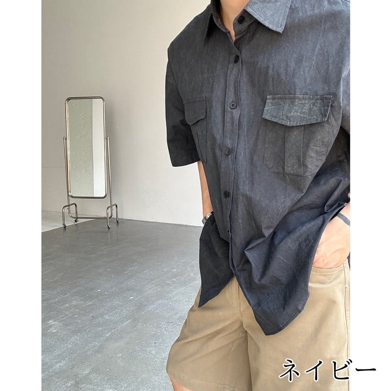 味のあるカラーが魅力のサンドウォッシュ加工を施された半袖シャツ。