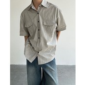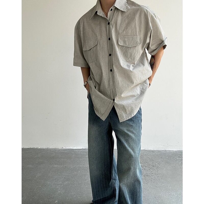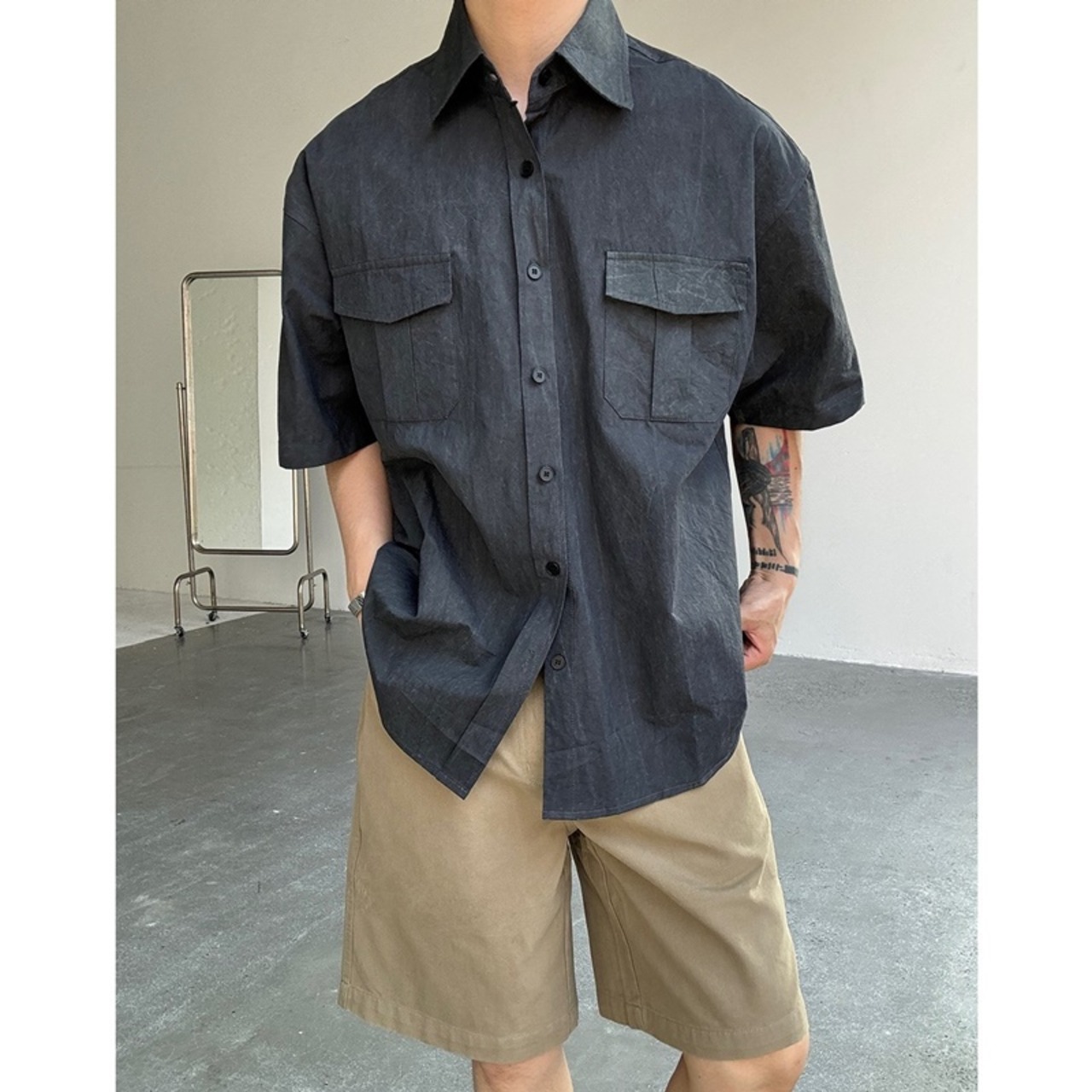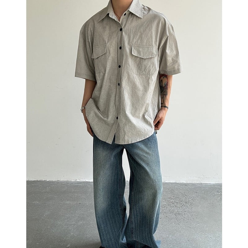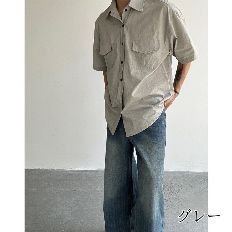 味のあるカラーが魅力のサンドウォッシュ加工を施された半袖シャツ。