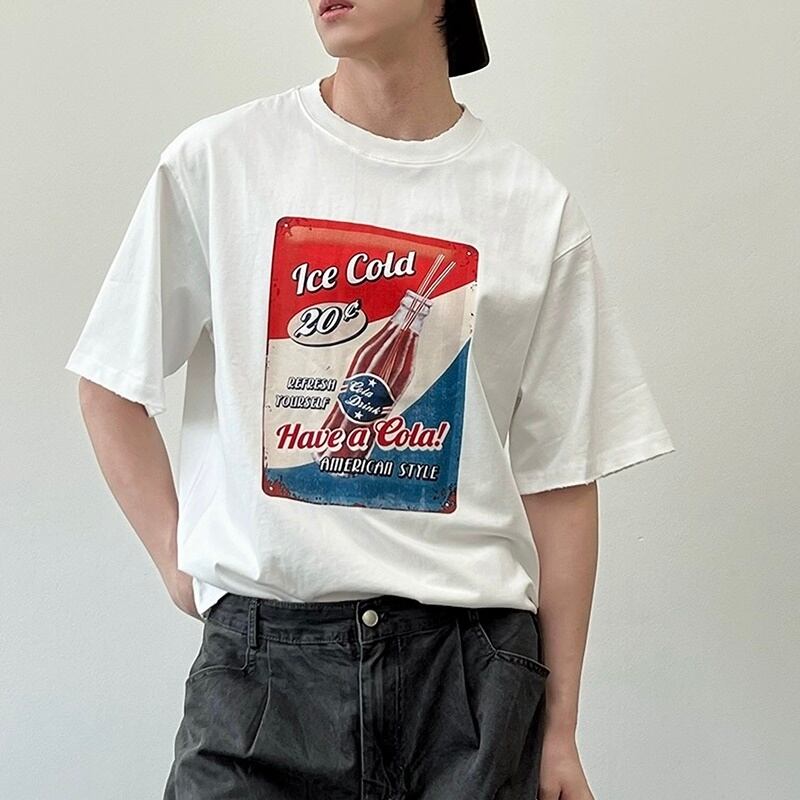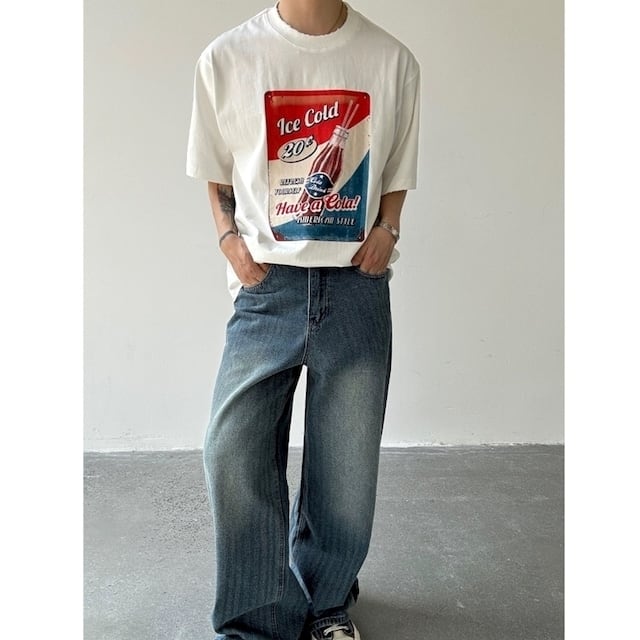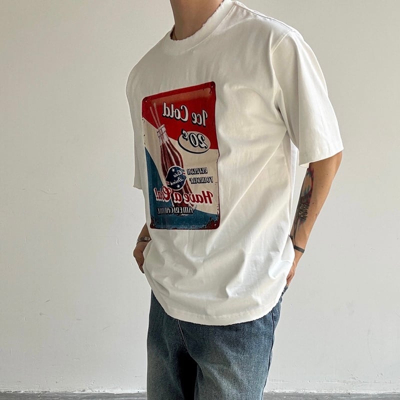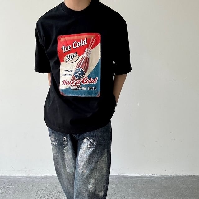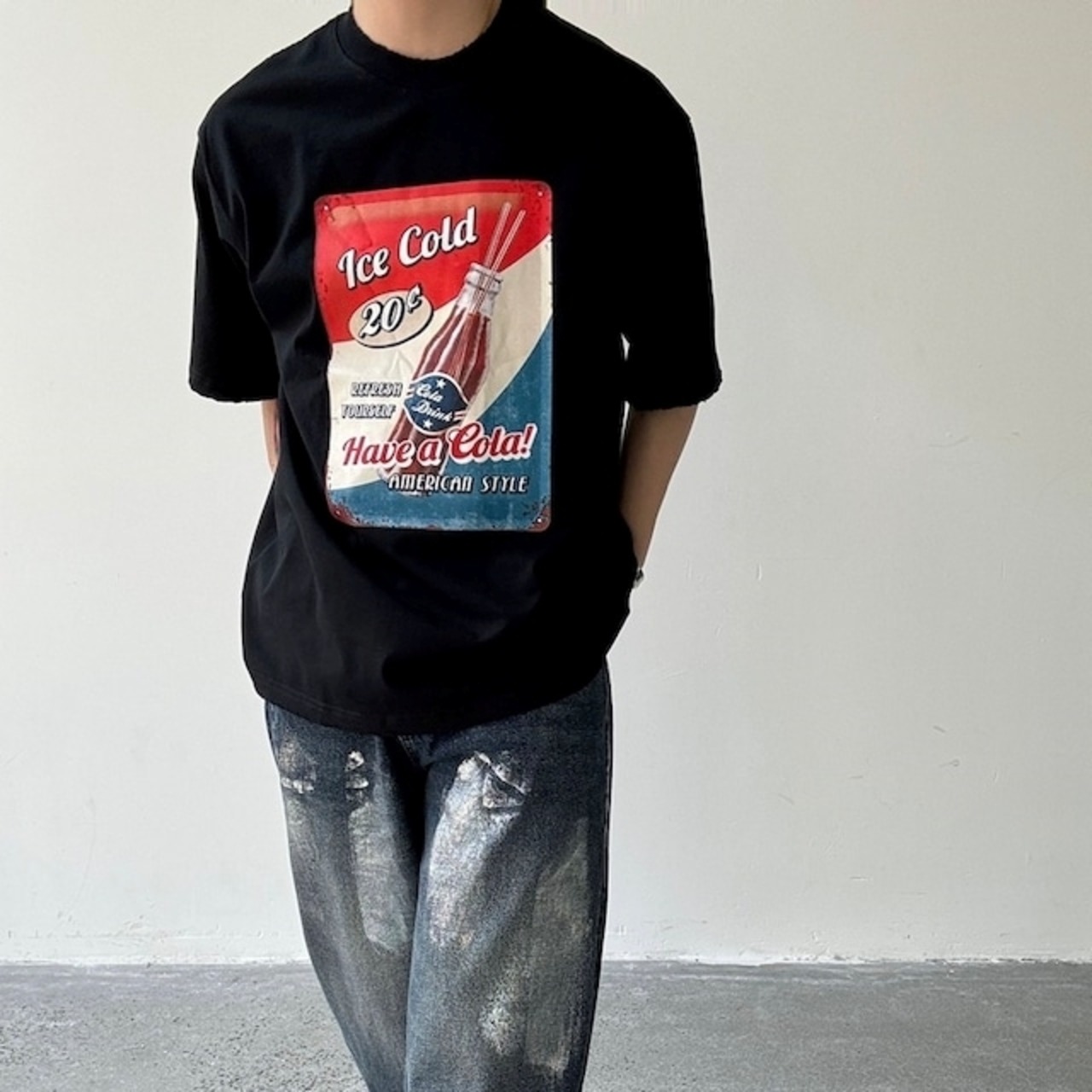 レトロテイストが目を引くグラフィック半袖Tシャツ。