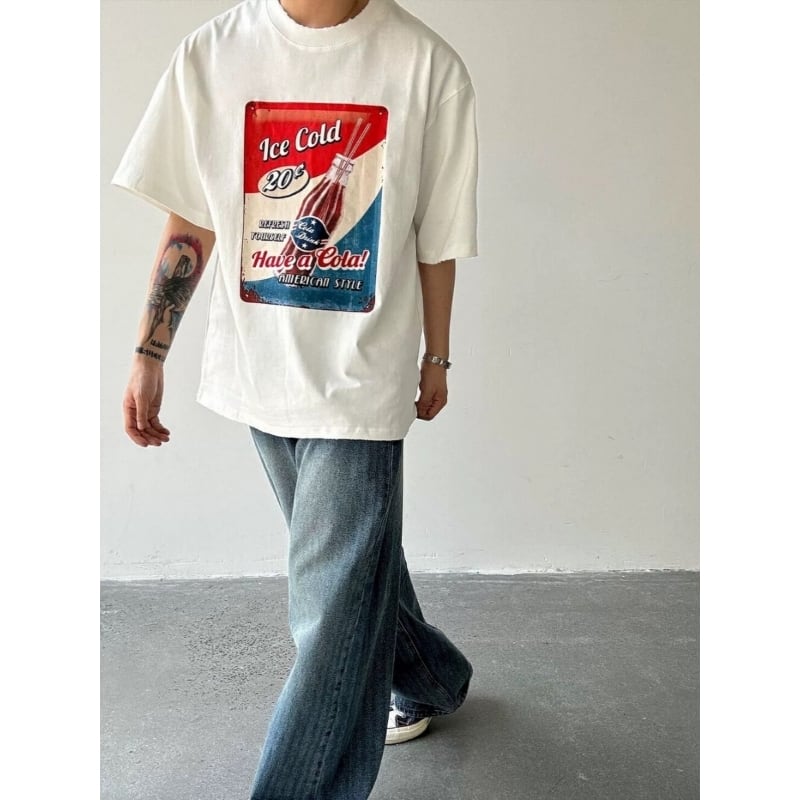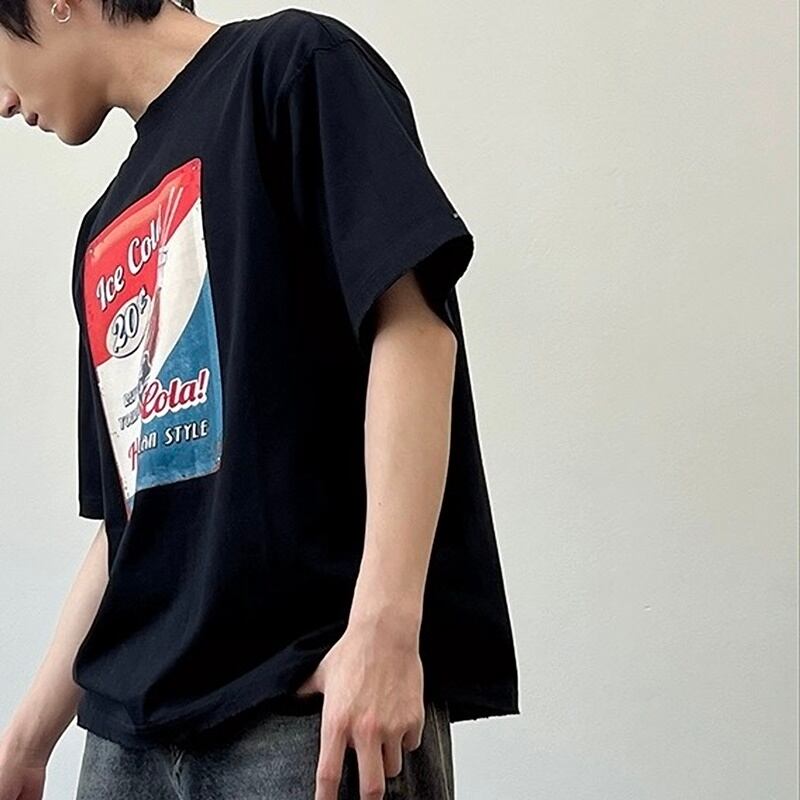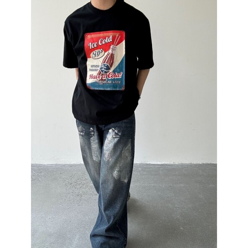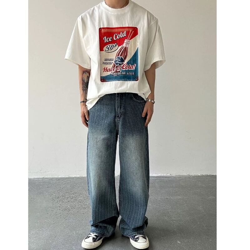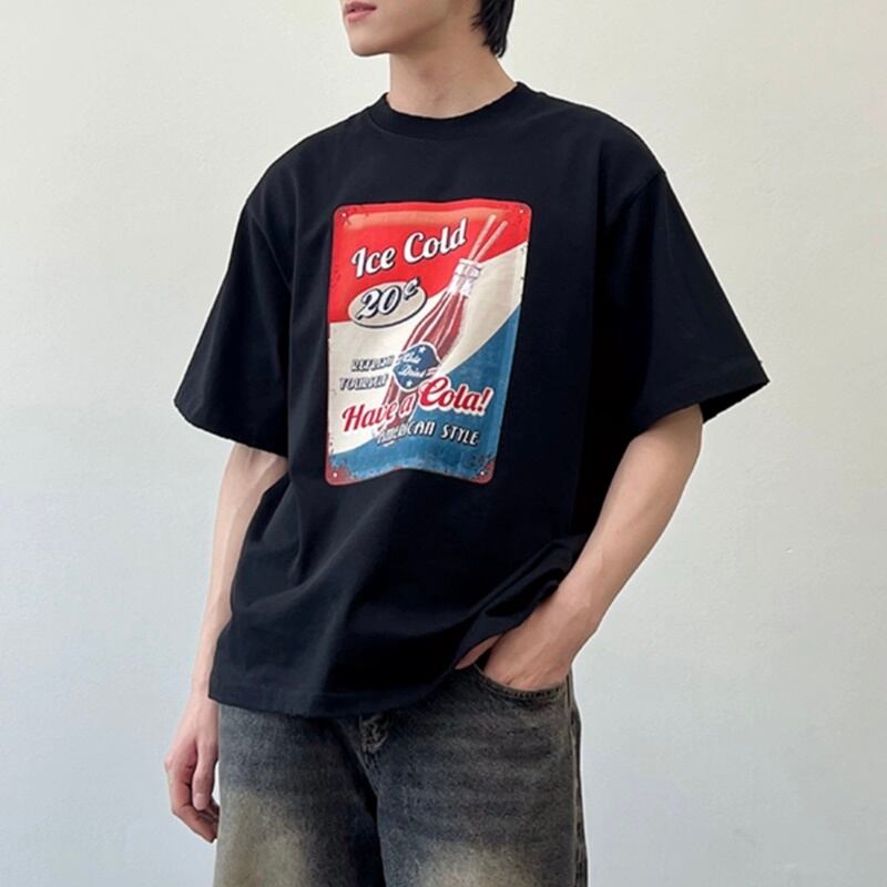 レトロテイストが目を引くグラフィック半袖Tシャツ。