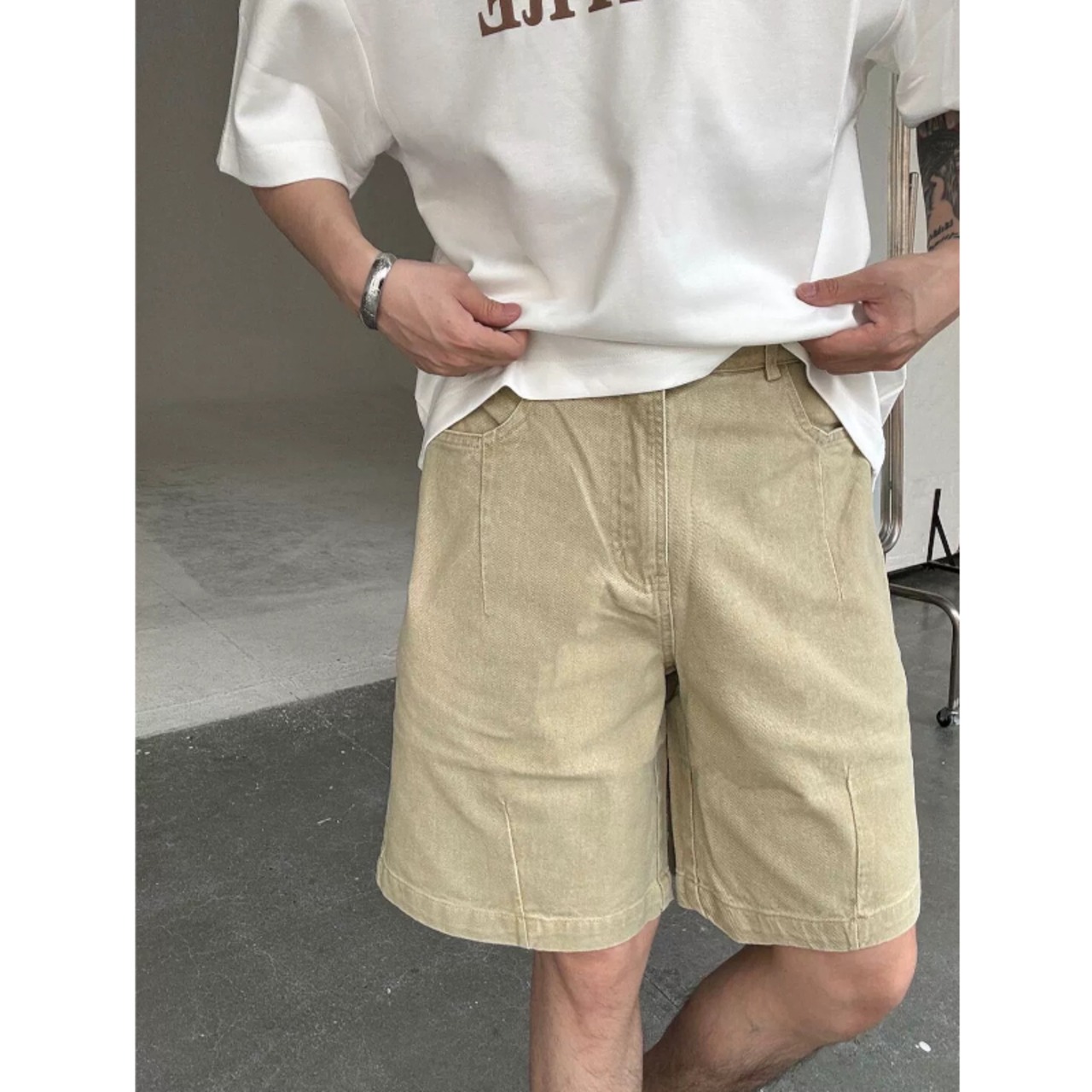 すらりとしたシルエットが印象的なストレートデニムハーフパンツ。