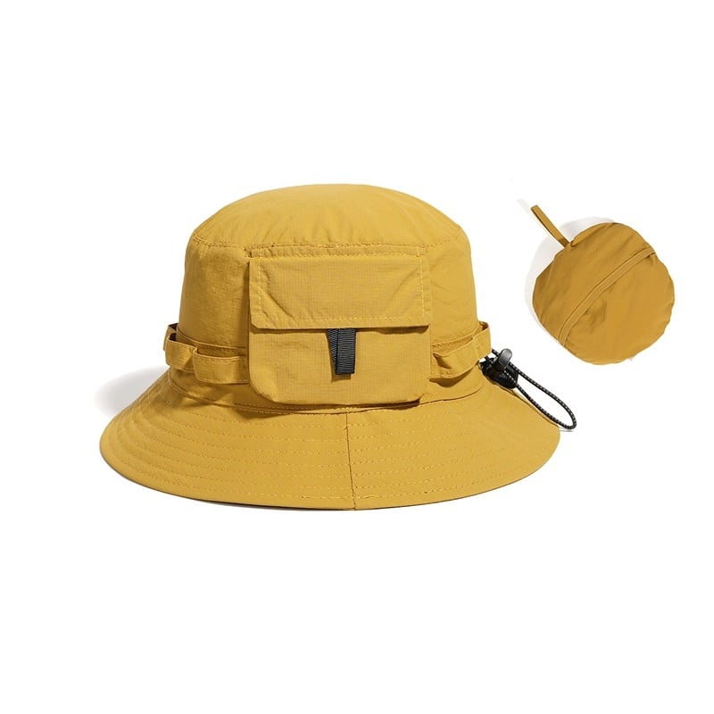 コンパクトに折りたためて携帯に便利なフィッシャーマンハット。