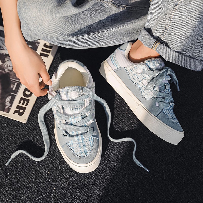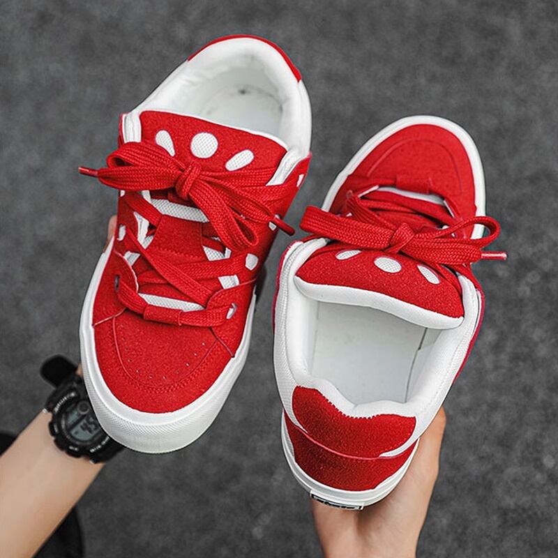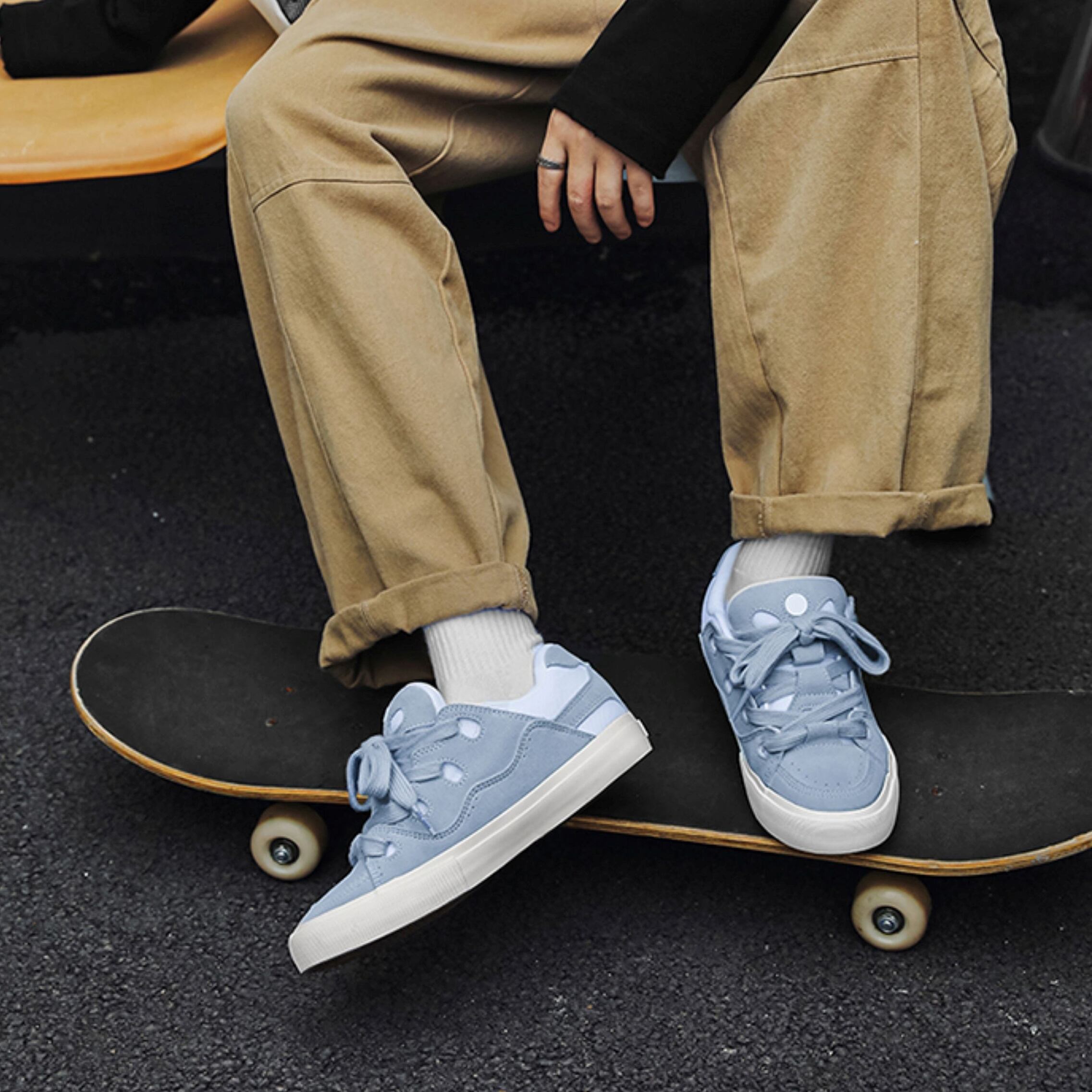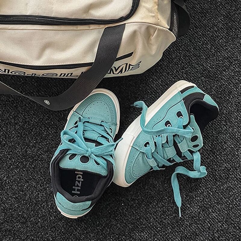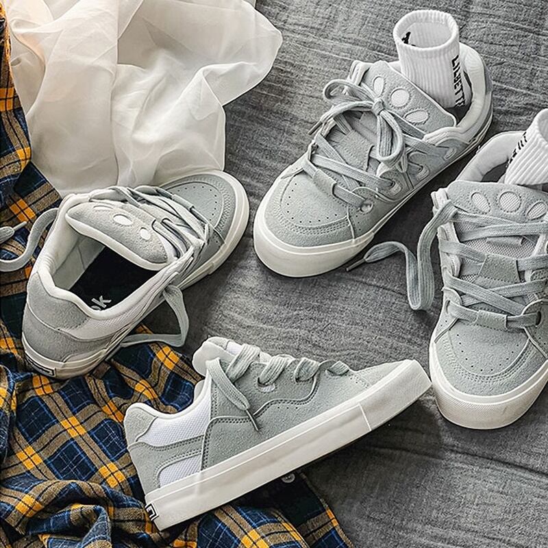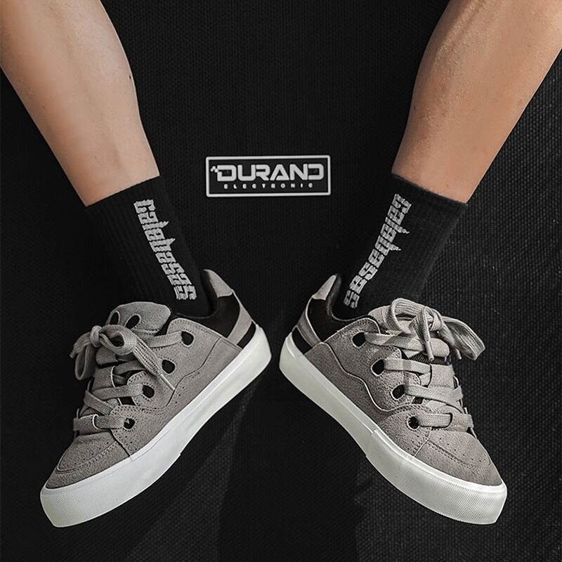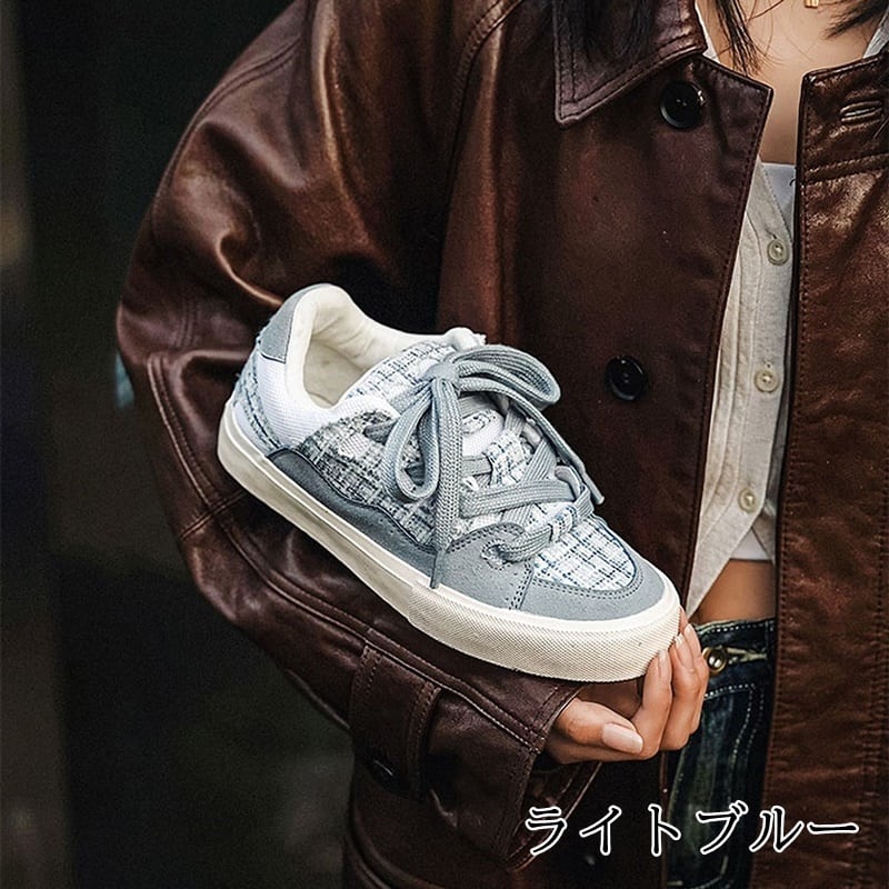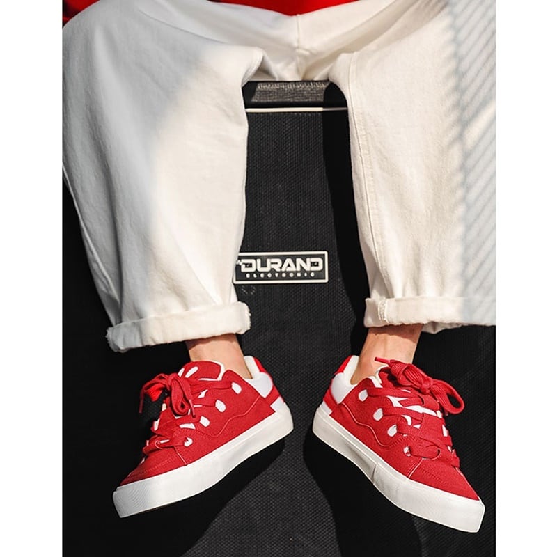 個性的なレースアップが魅力のバックスキンスニーカー。