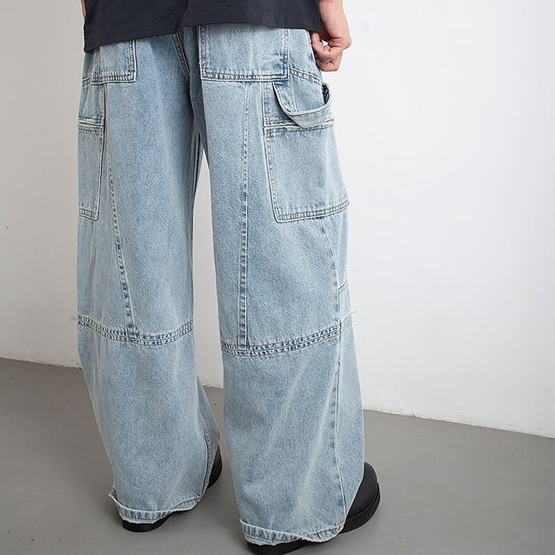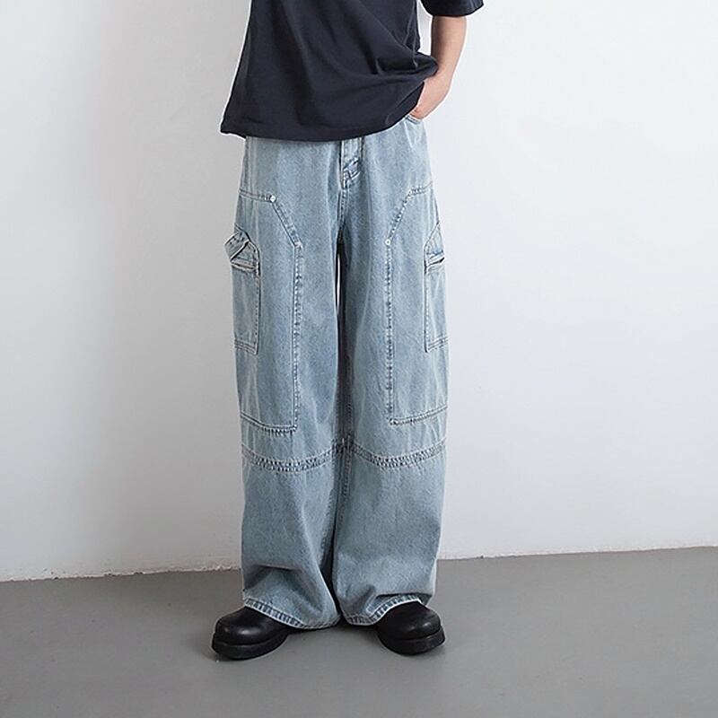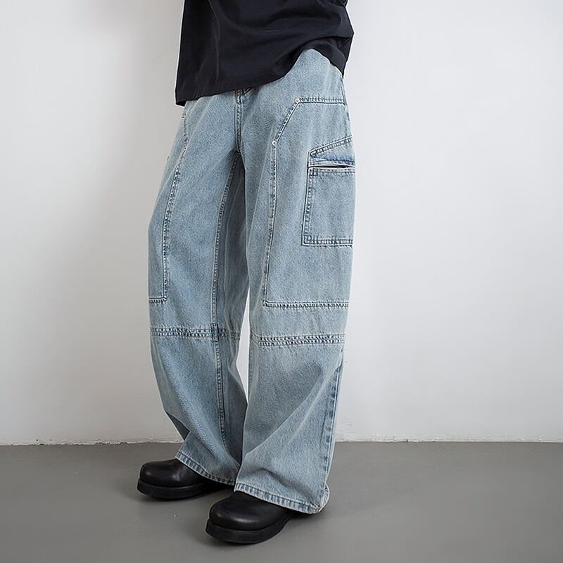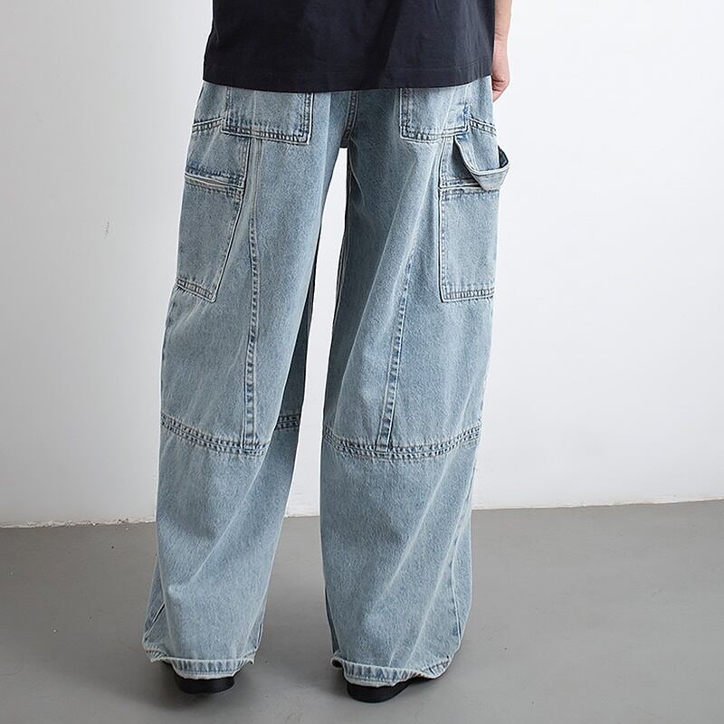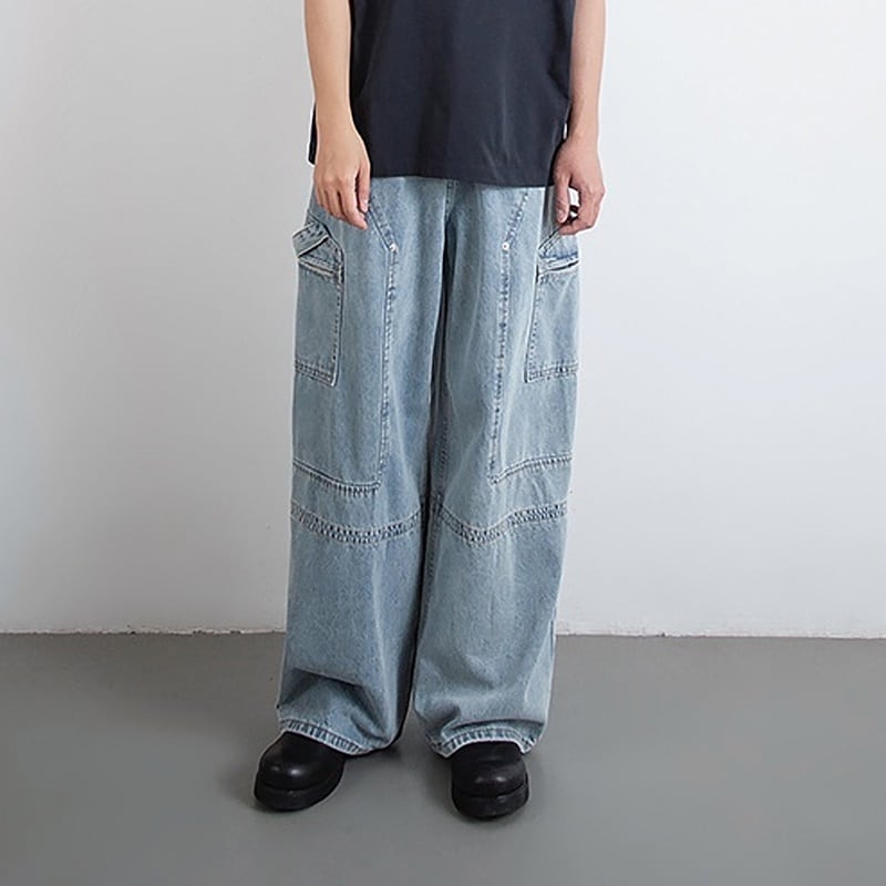 立体的なシルエットに仕立てられたデニムワイドパンツ。