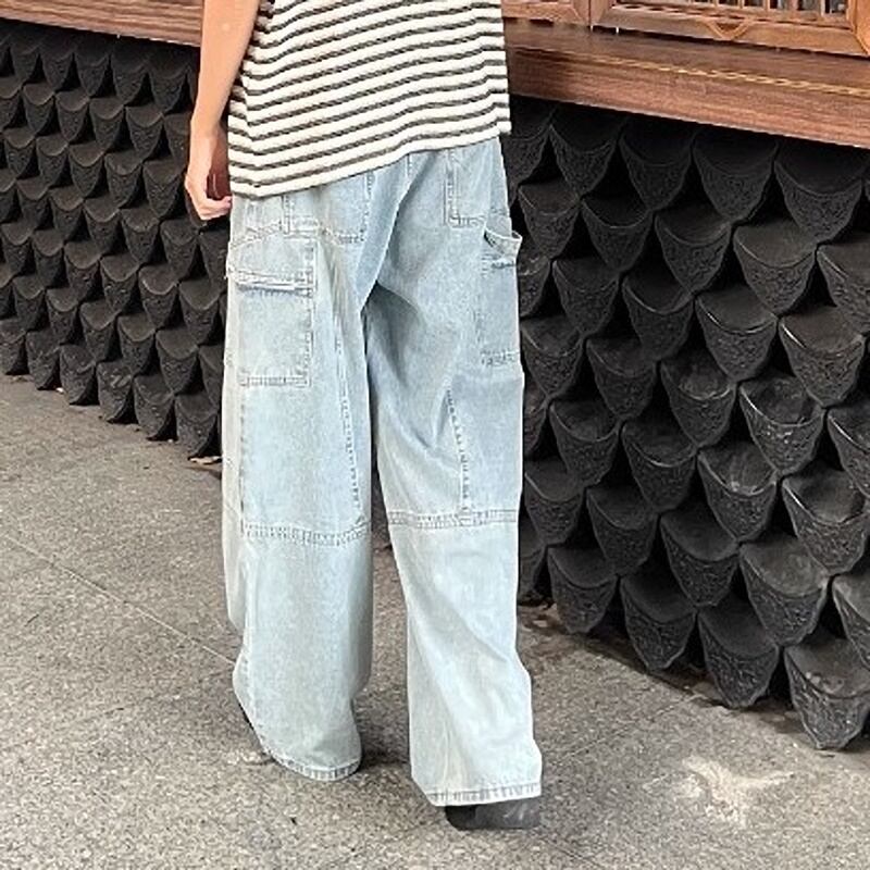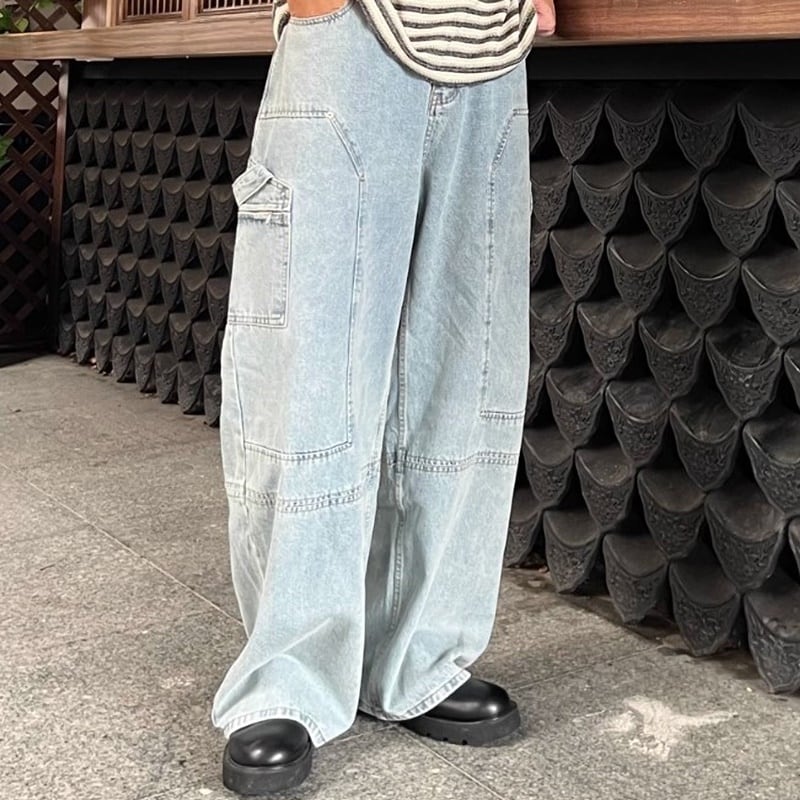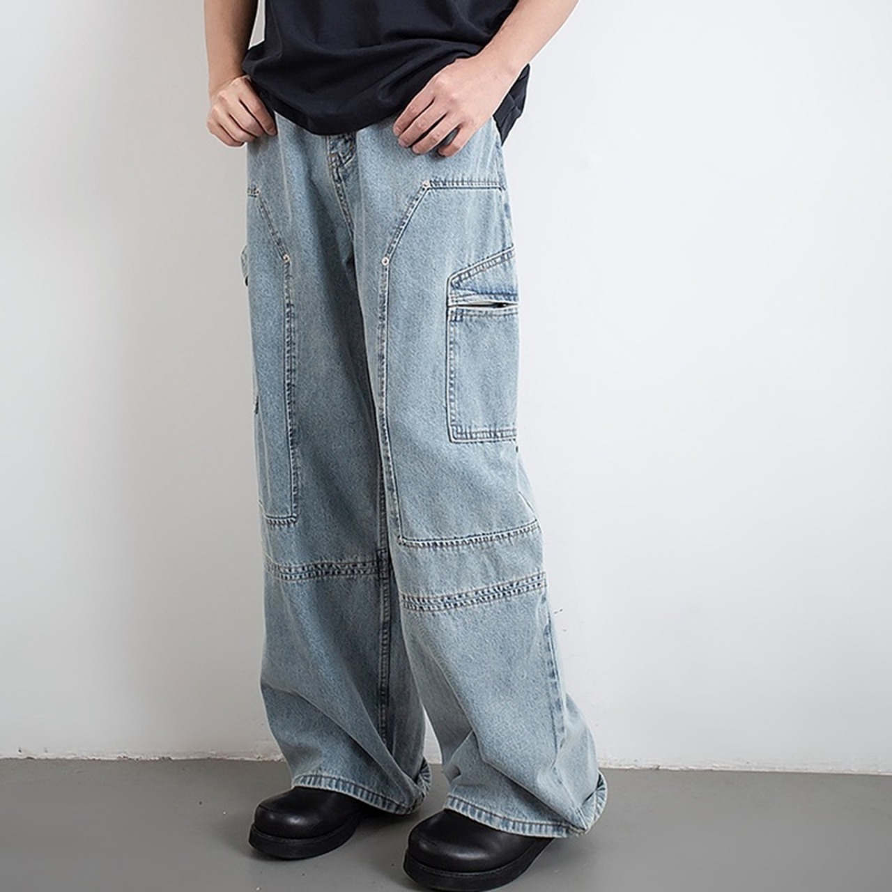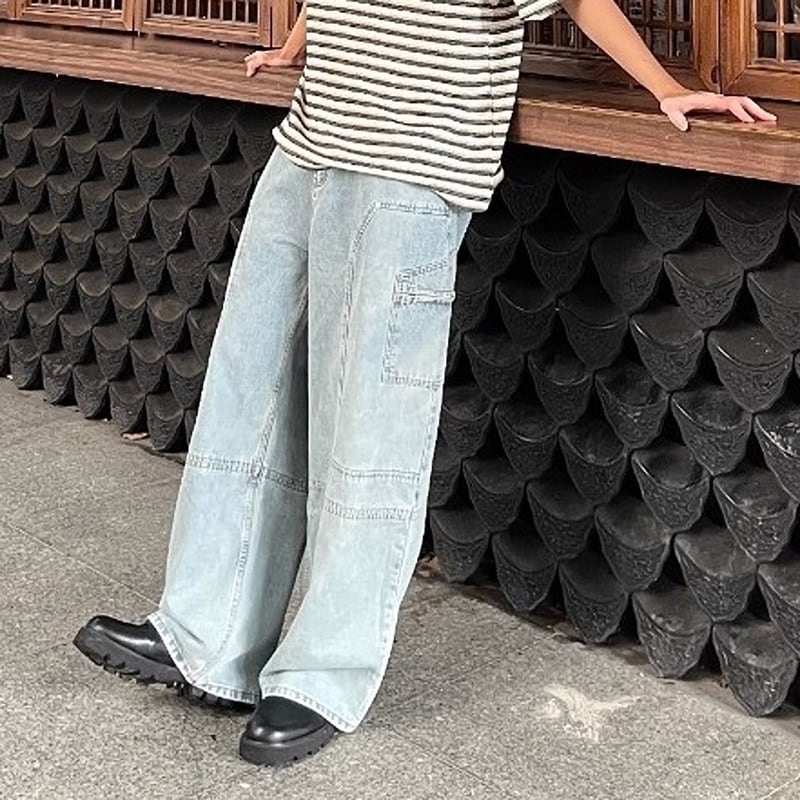 立体的なシルエットに仕立てられたデニムワイドパンツ。