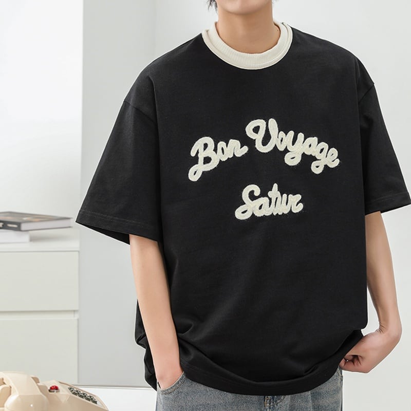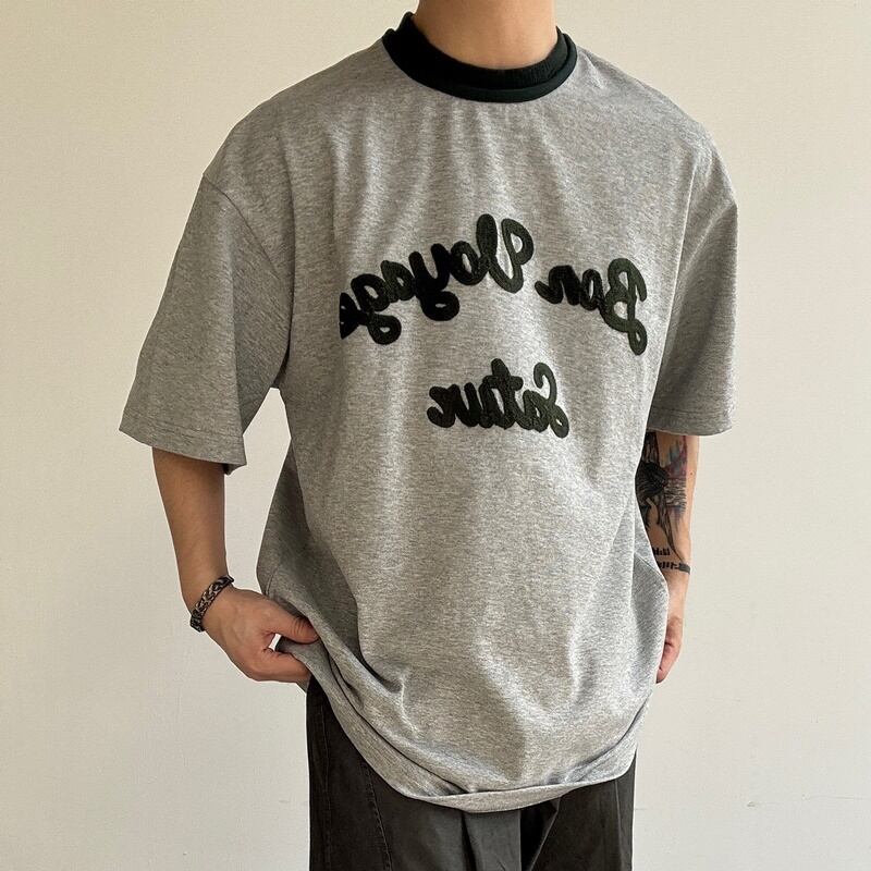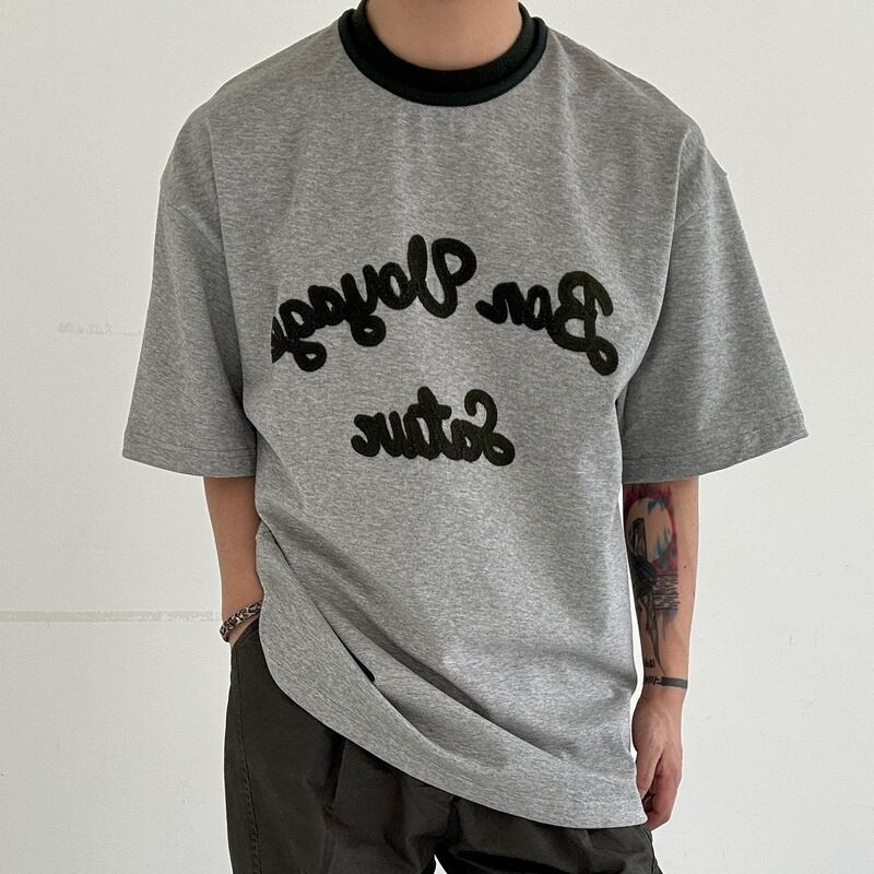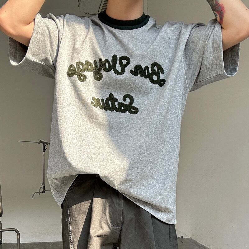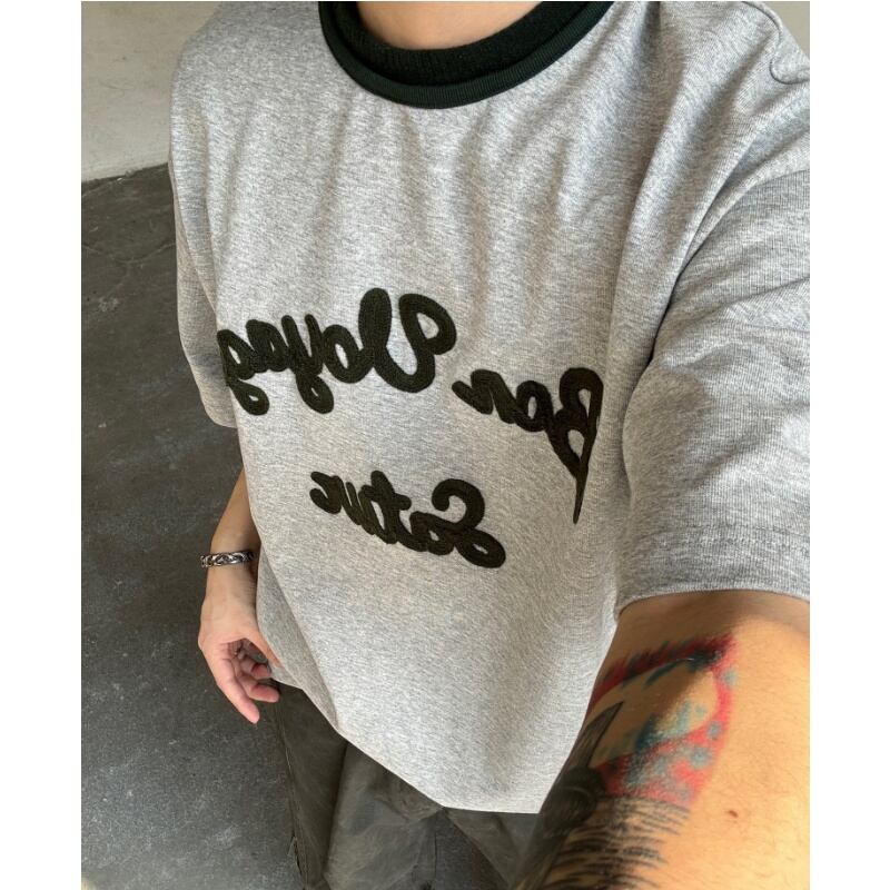 襟ぐりとロゴのカラーとベースカラーのコントラストが映える半袖Tシャツ。