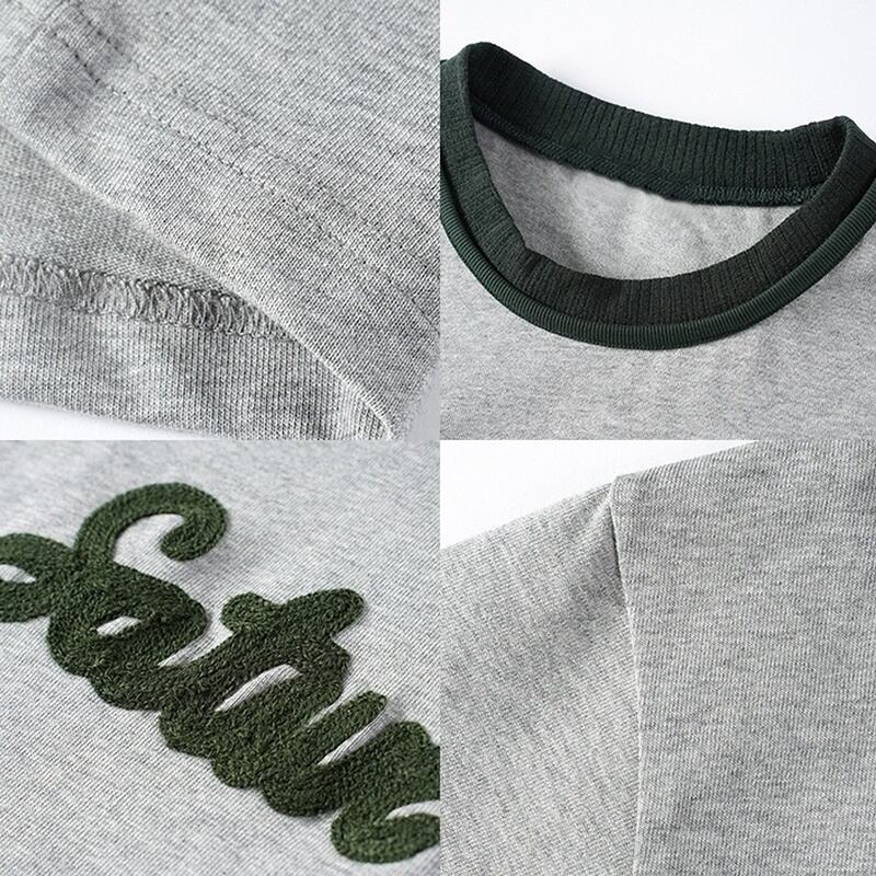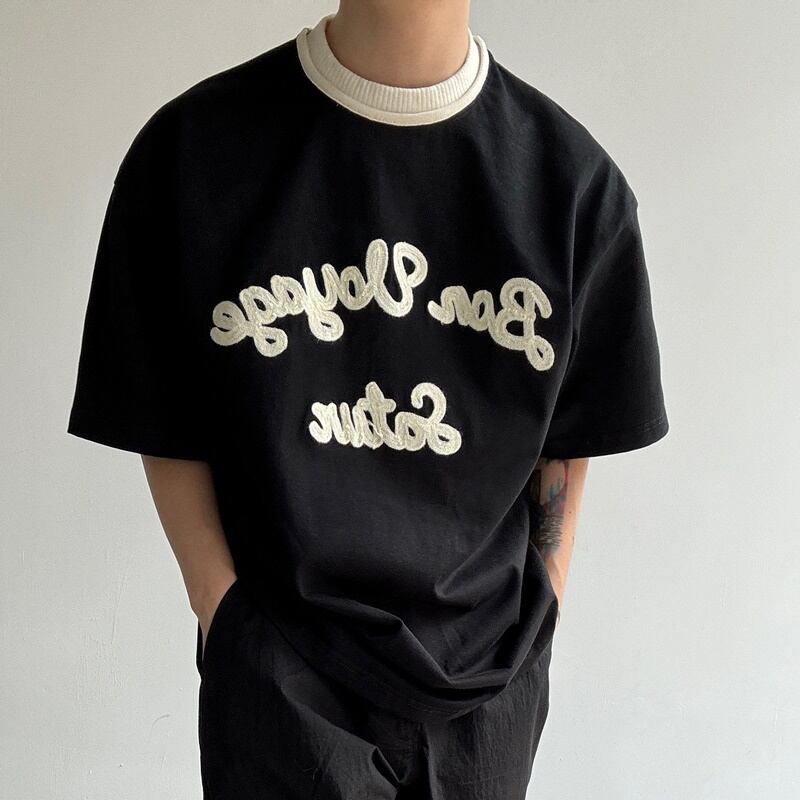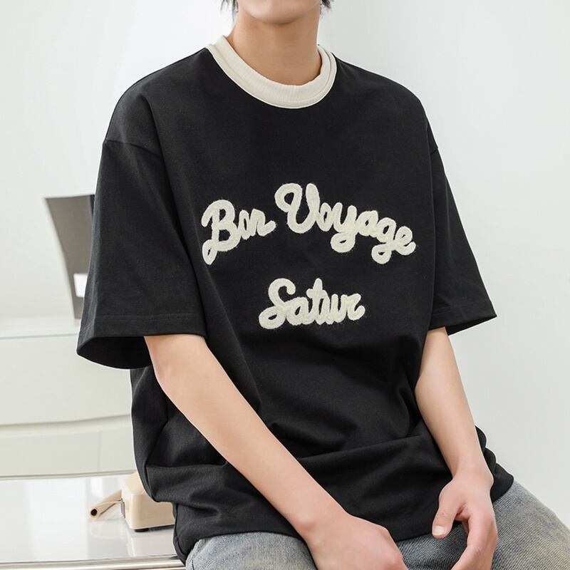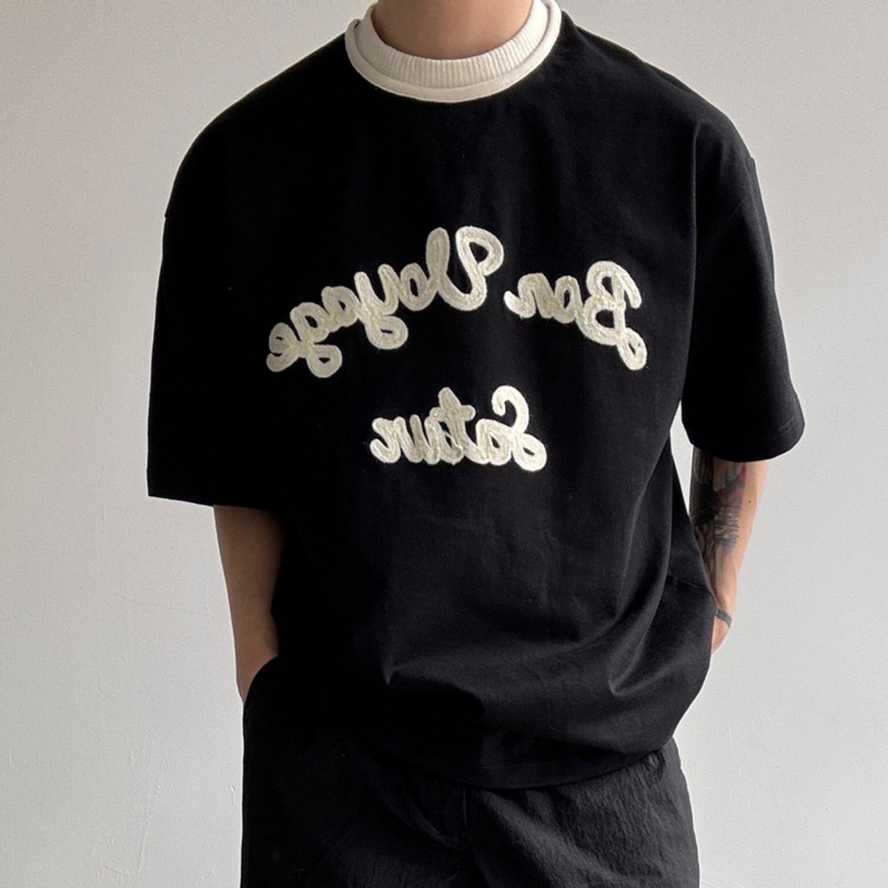 襟ぐりとロゴのカラーとベースカラーのコントラストが映える半袖Tシャツ。