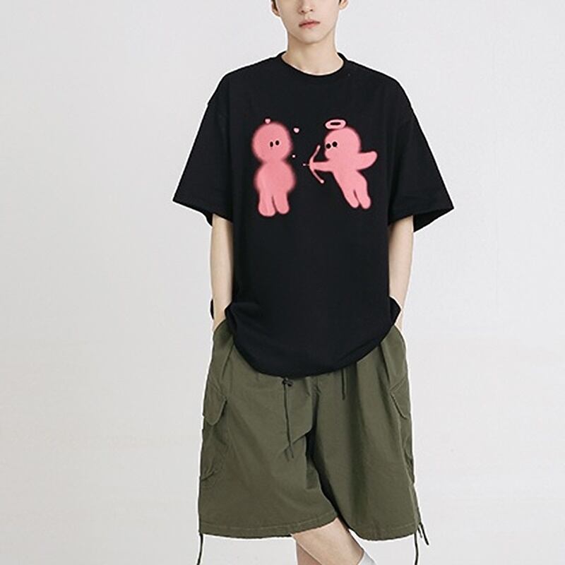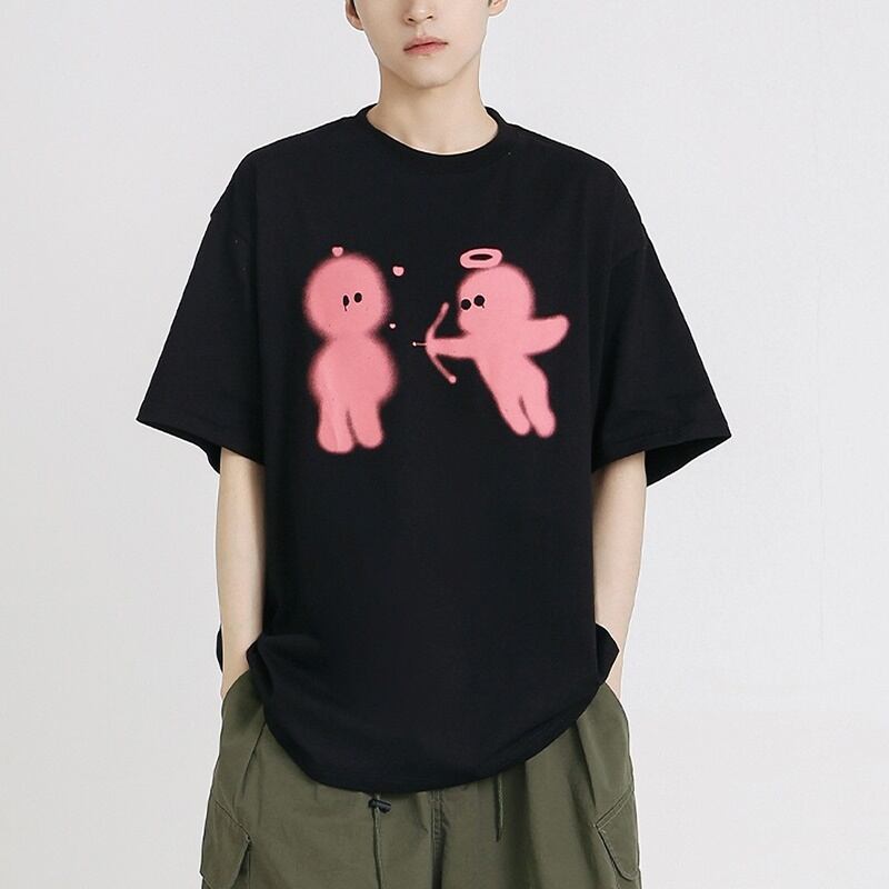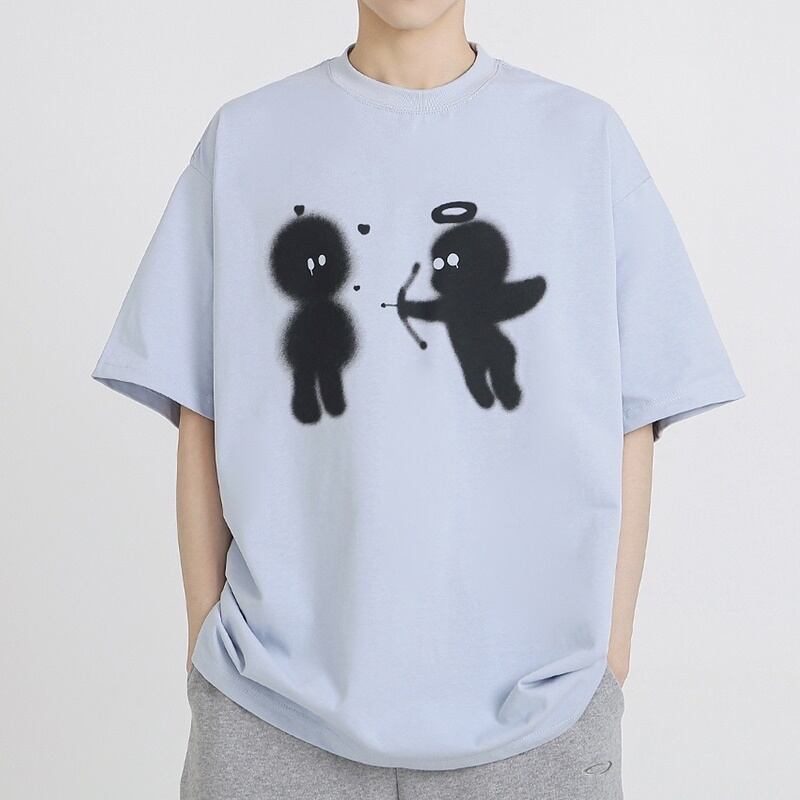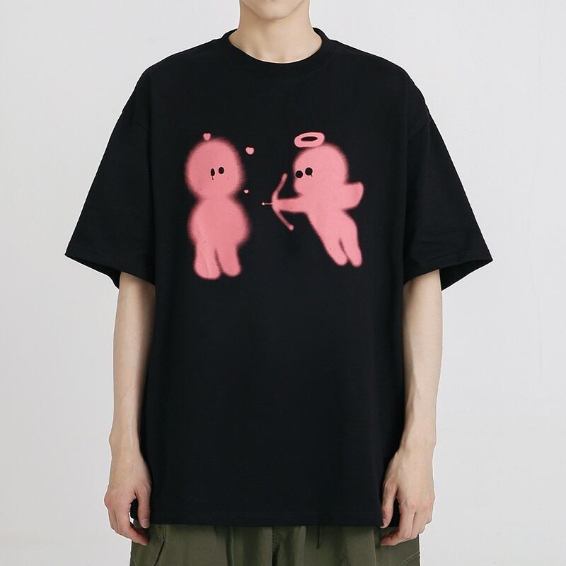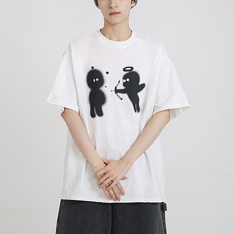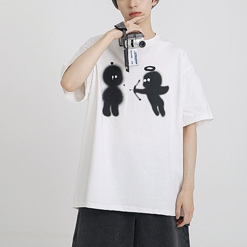 キューピッドがスプレーアートでストリート感を持つ個性的な半袖Tシャツ。