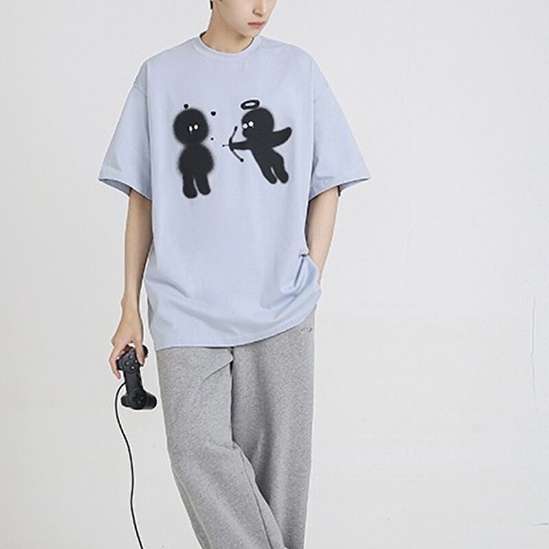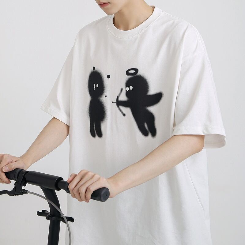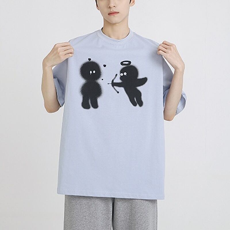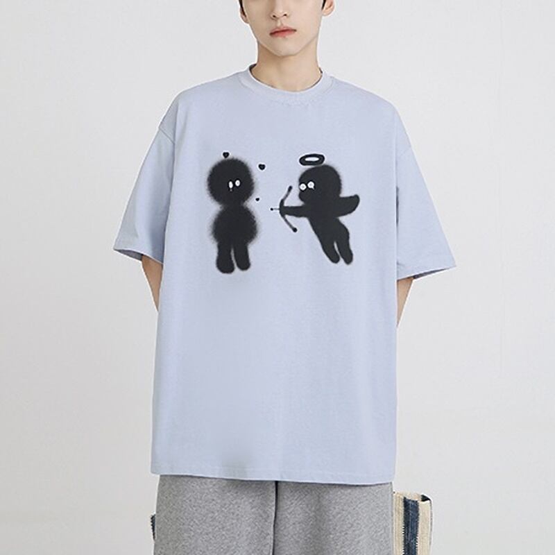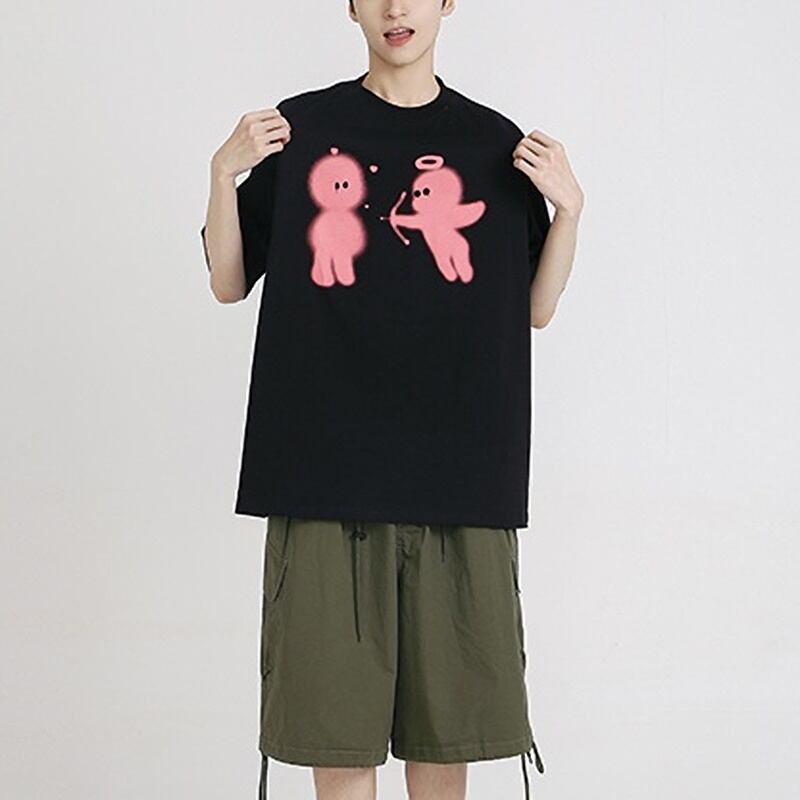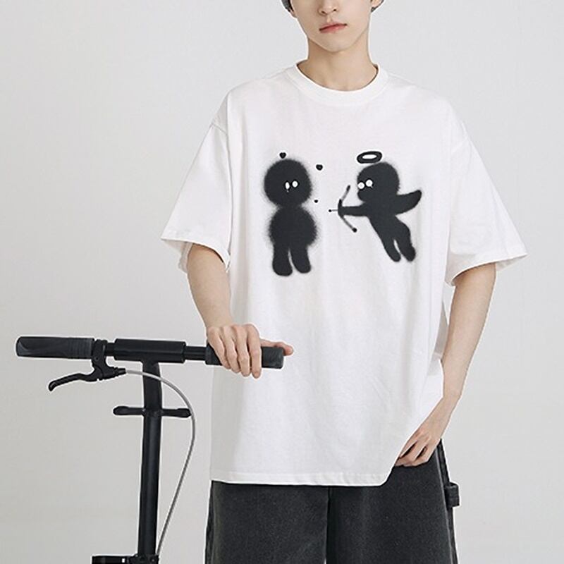 キューピッドがスプレーアートでストリート感を持つ個性的な半袖Tシャツ。