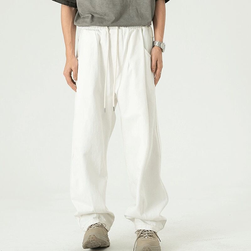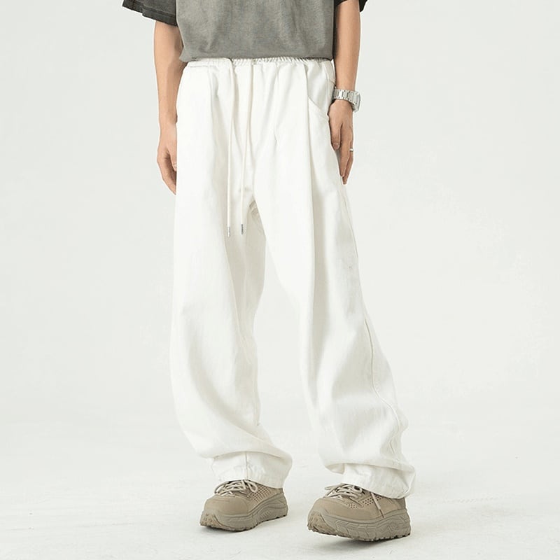 ウエストの大きなタックが裾に向かって広がるデザインのワイドジーンズ。