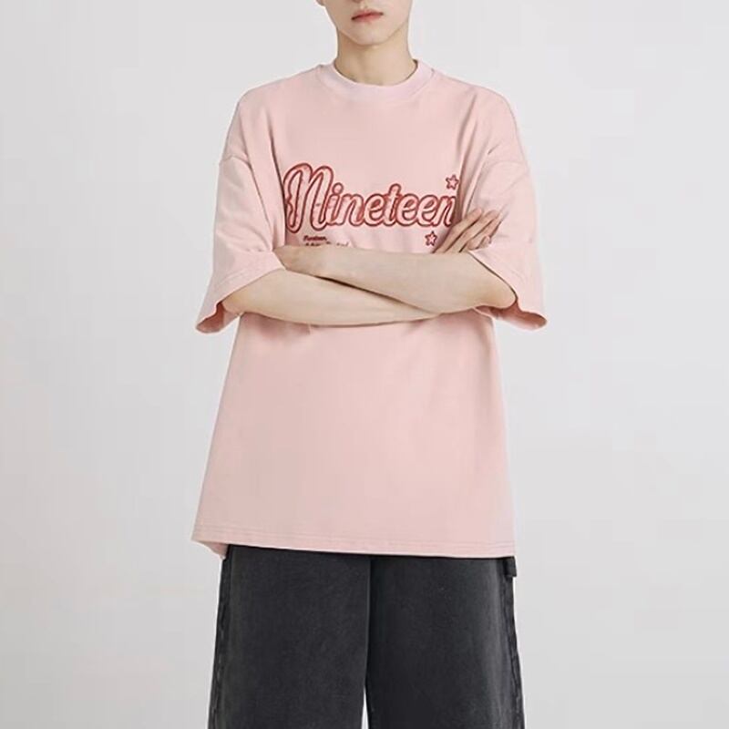 ピンクのロゴプリントが柔らかい雰囲気を持つユニセックスでお使いいただける半袖Tシャツです。