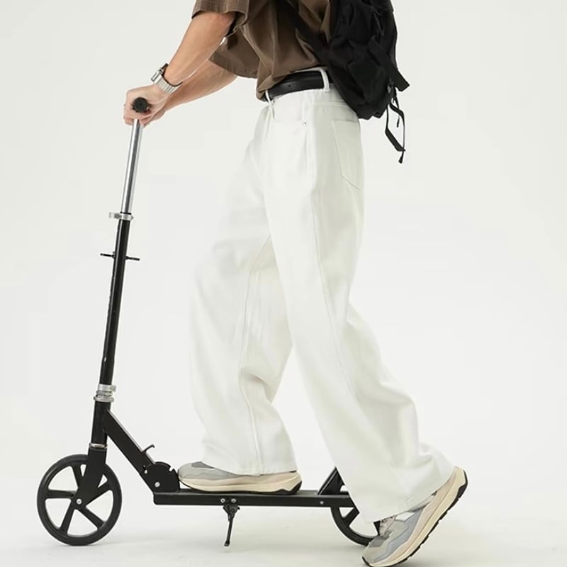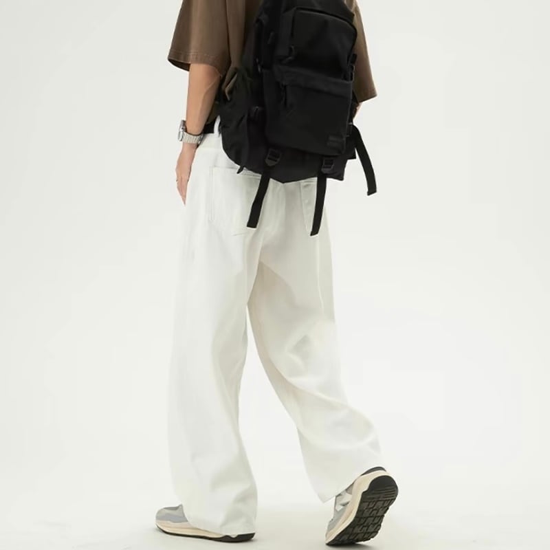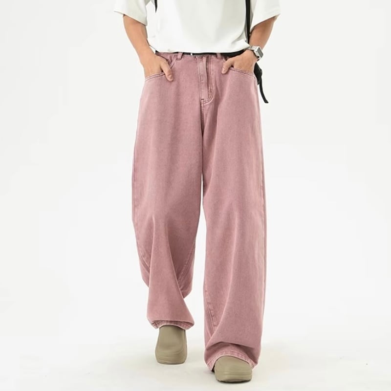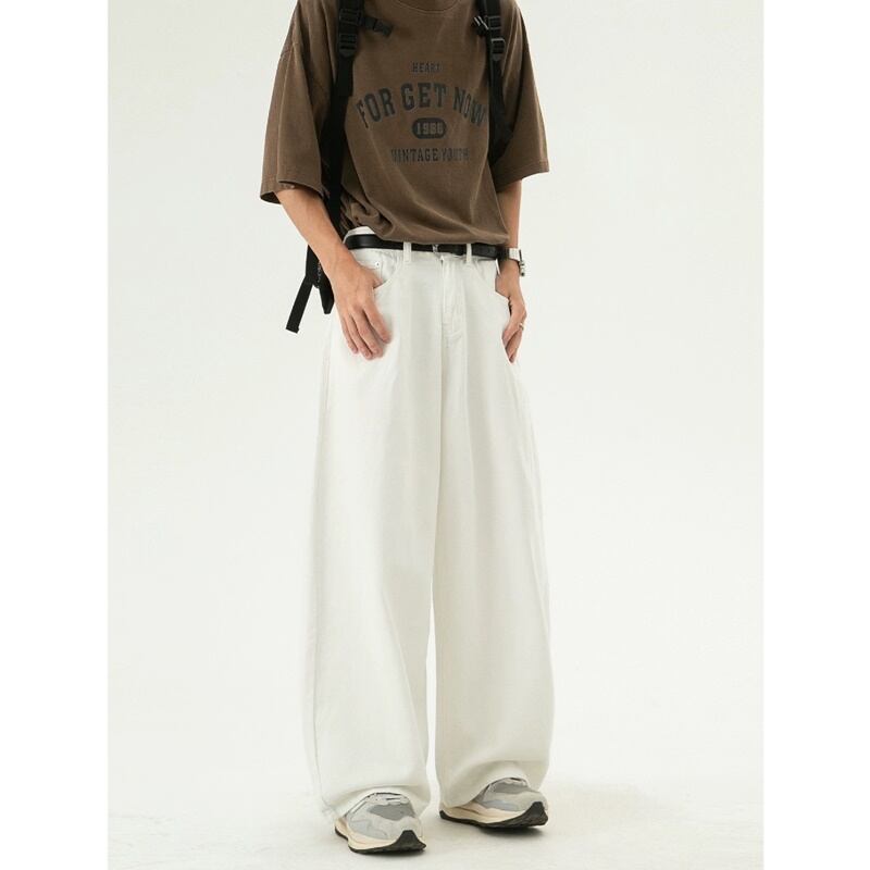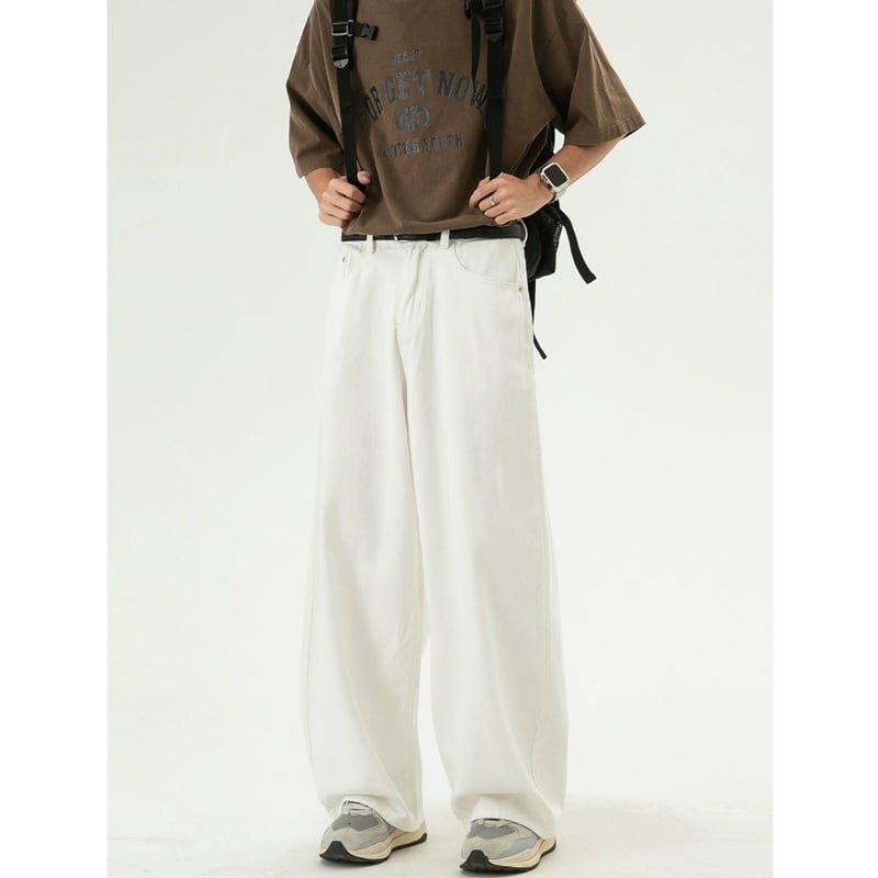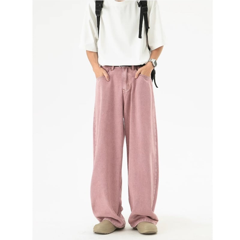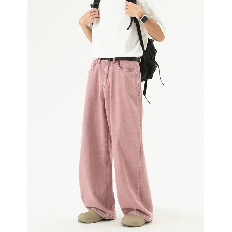 ルーズシルエットとウォッシュド加工が程よいダメージ感あるワイドカラージーンズ。