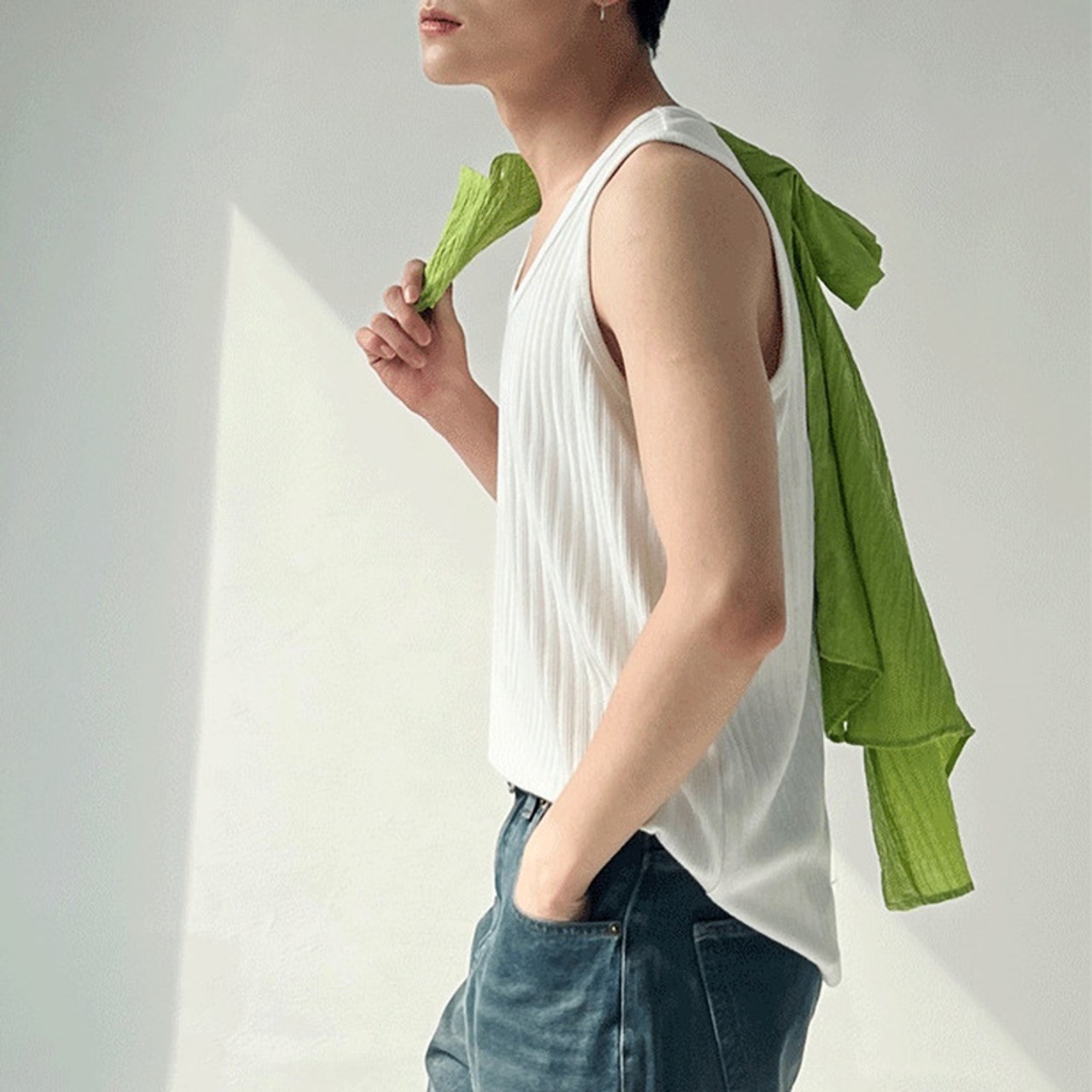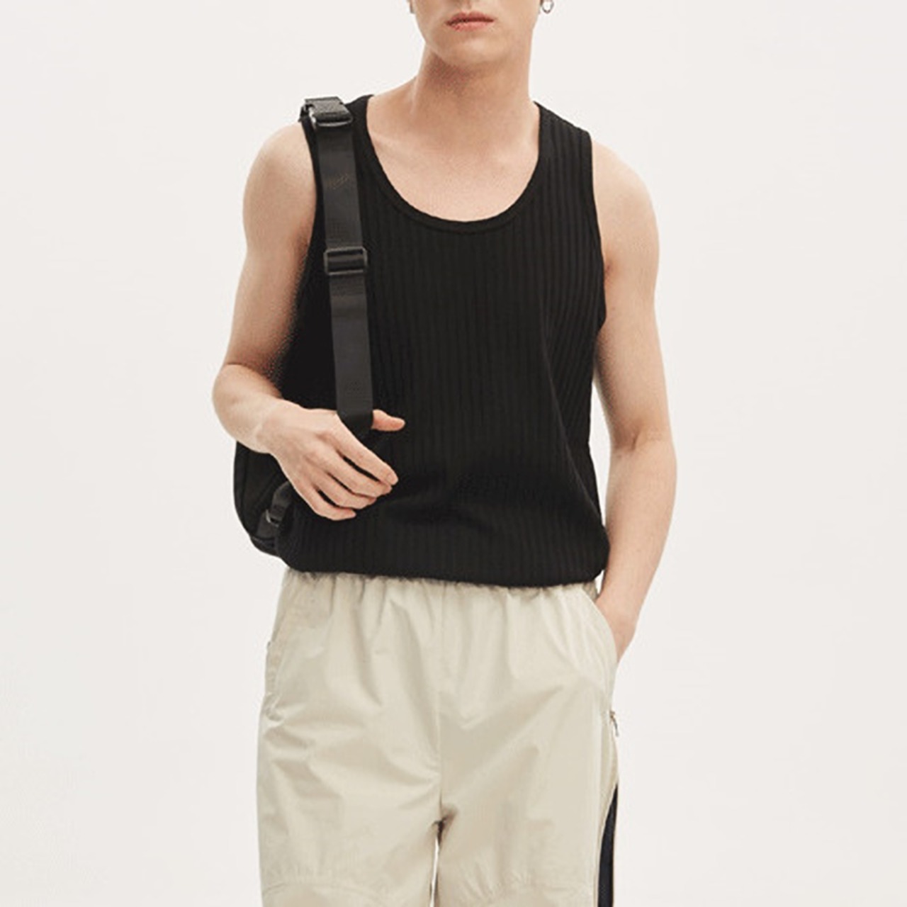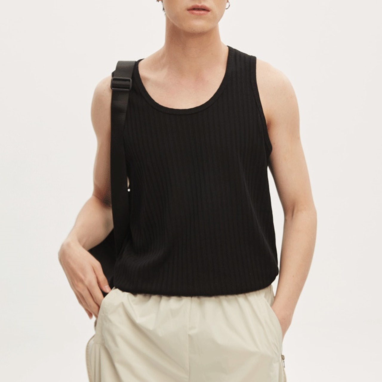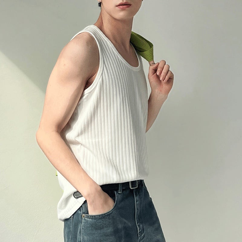 シンプルでジャストサイズに仕立てられたノースリーブ。