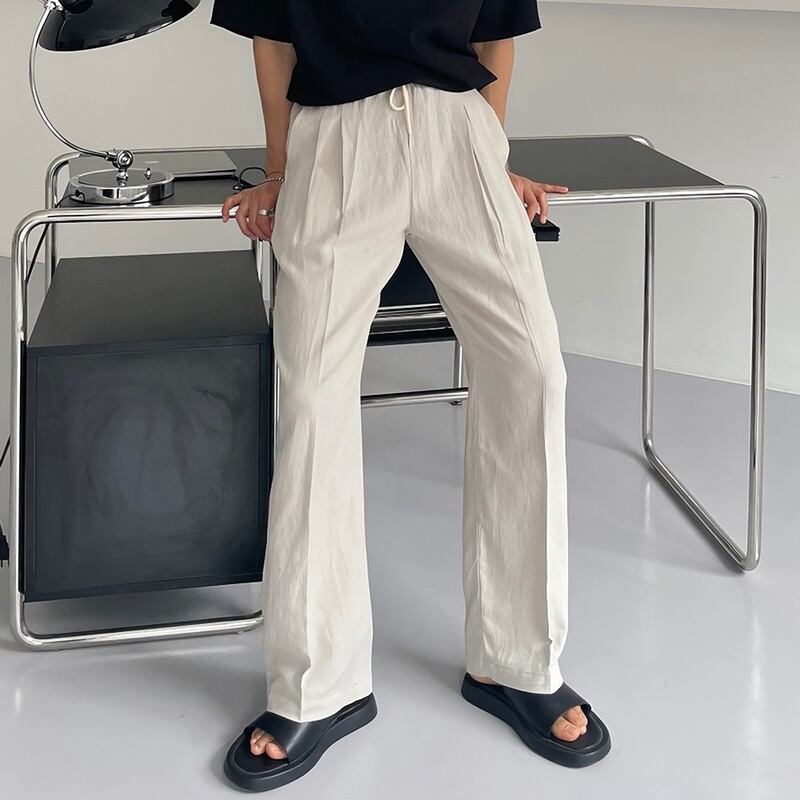 センタープレスとフルレングス丈でスタイルアップを狙えます。