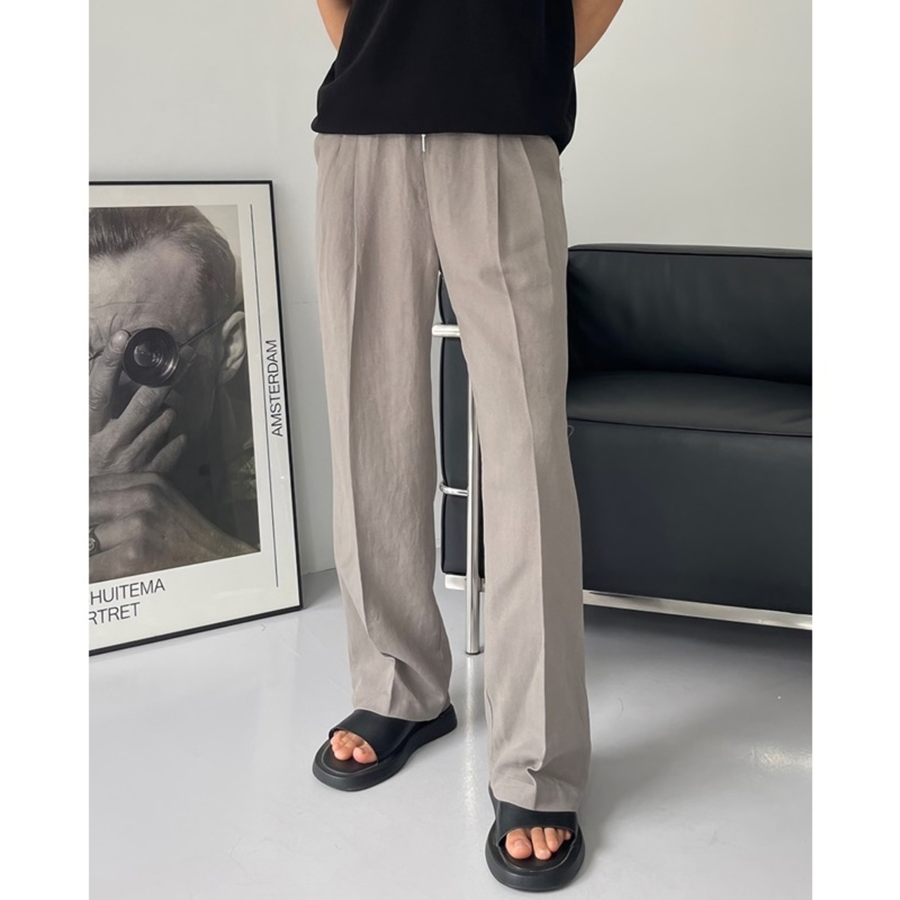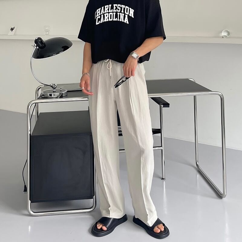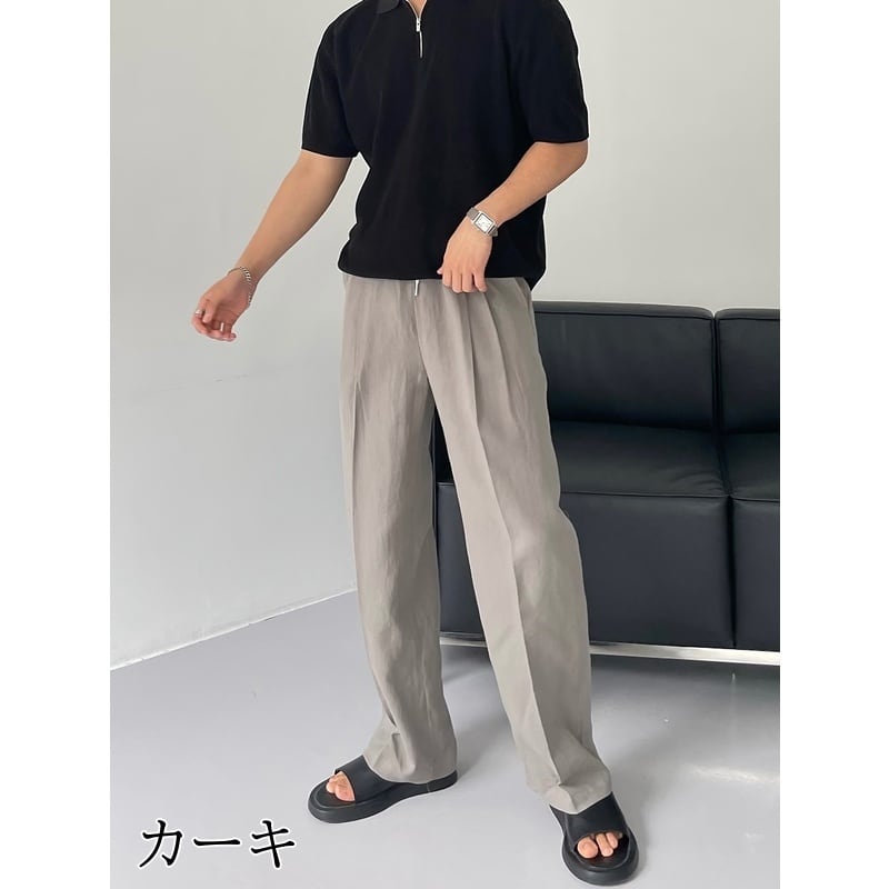 落ち着いたワイド感が魅力で大人カジュアルスタイルにおすすめのストレートワイドパンツ。