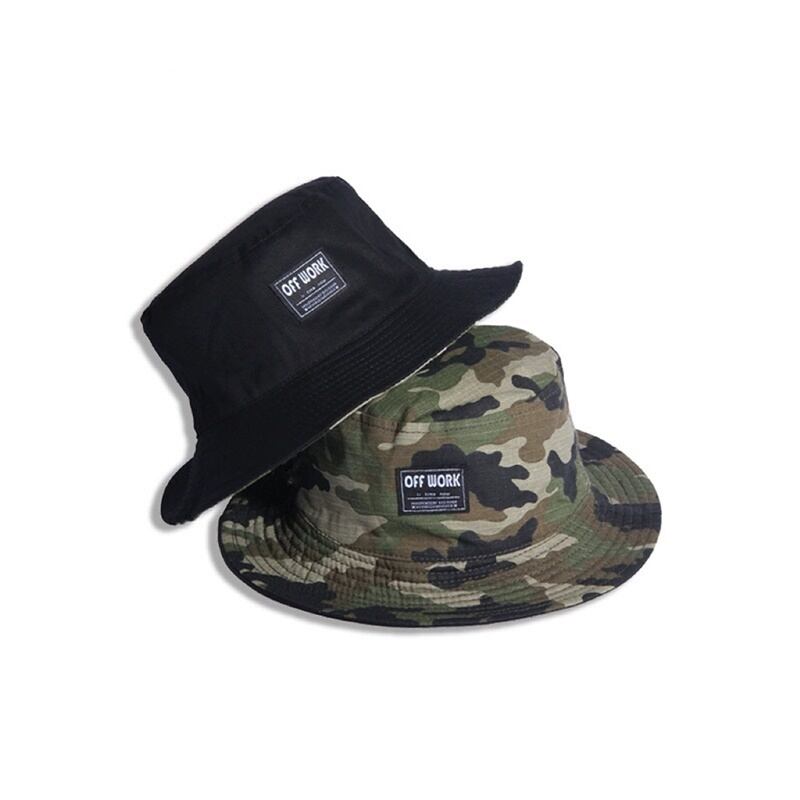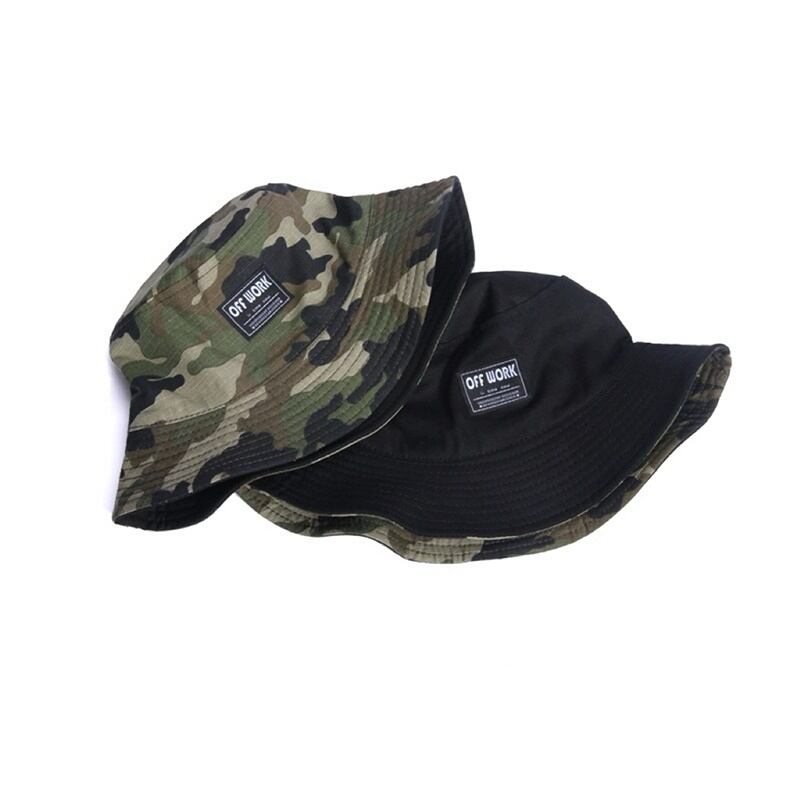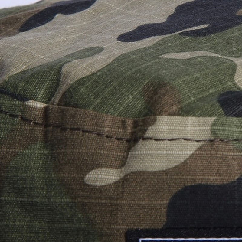 迷彩柄と黒の無地のリバーシブル仕立てで、
