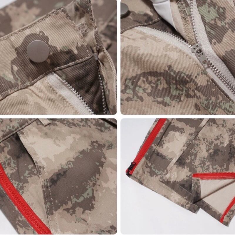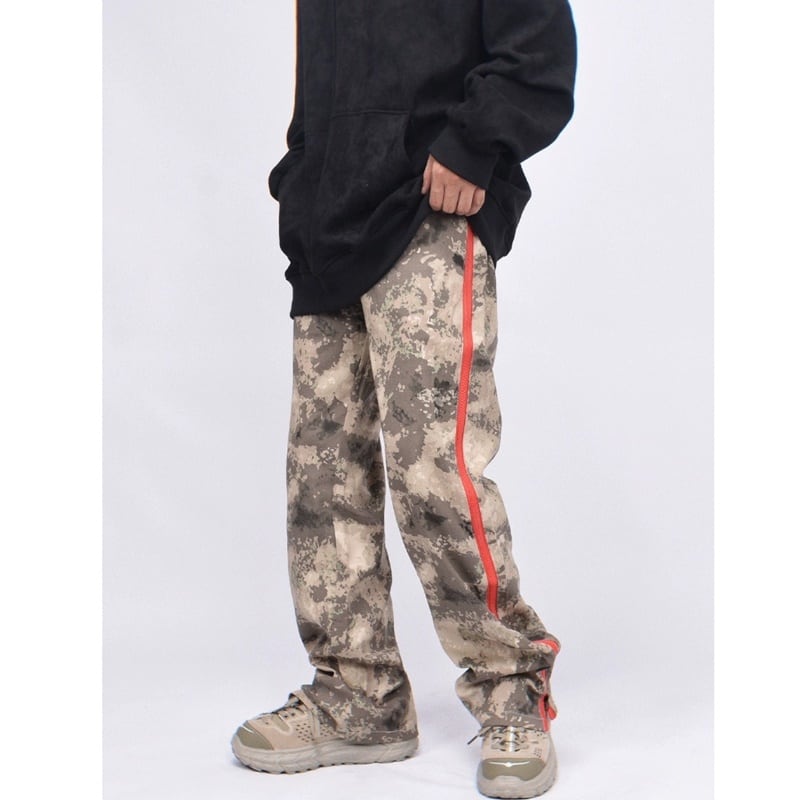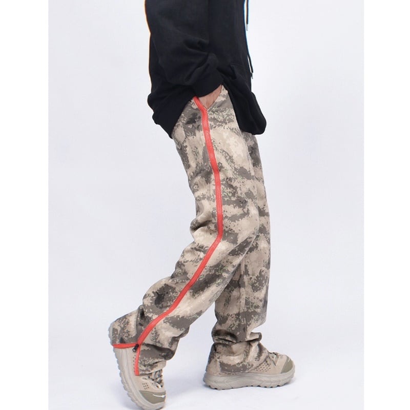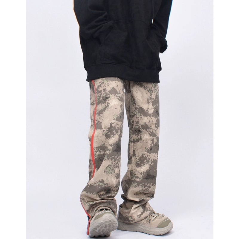 ソフトなカラー迷彩にオレンジのジッパーラインの映えと裾から開けることができる機能性を兼ね備えたアイテム。