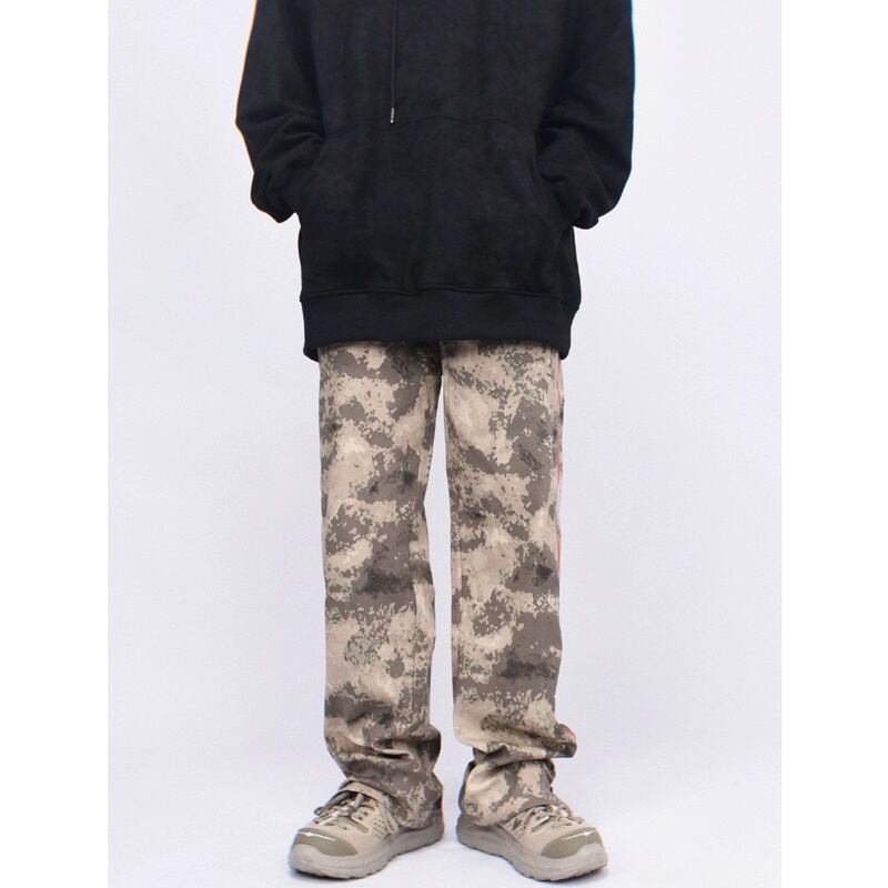 シンプルなトップスと合わせて迷彩柄を活かしたコーディネートがおすすめです。