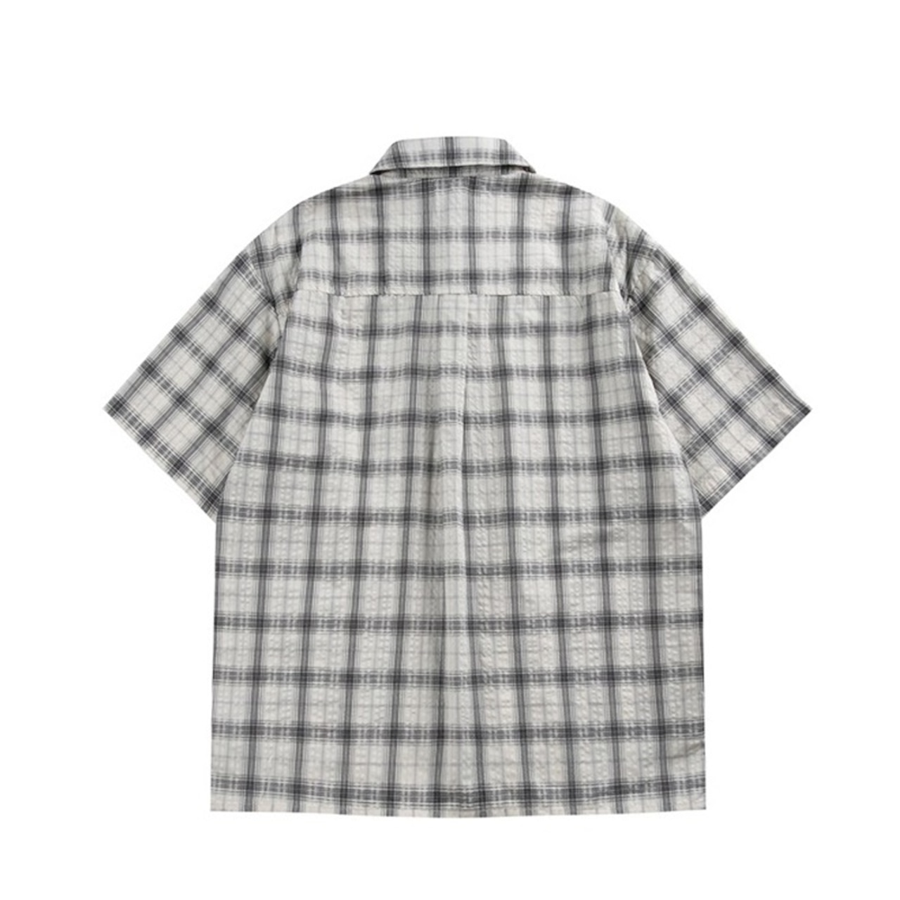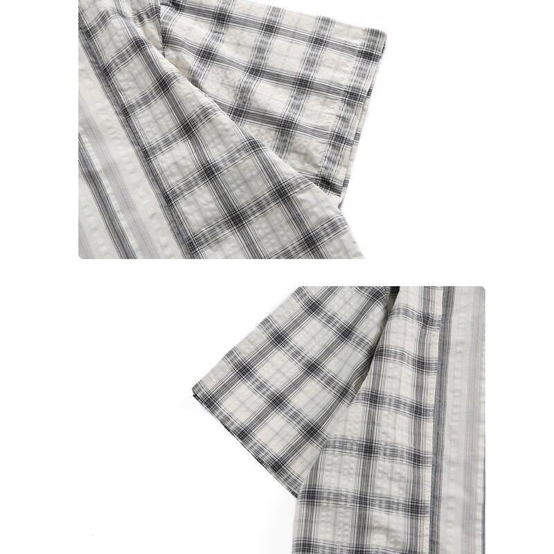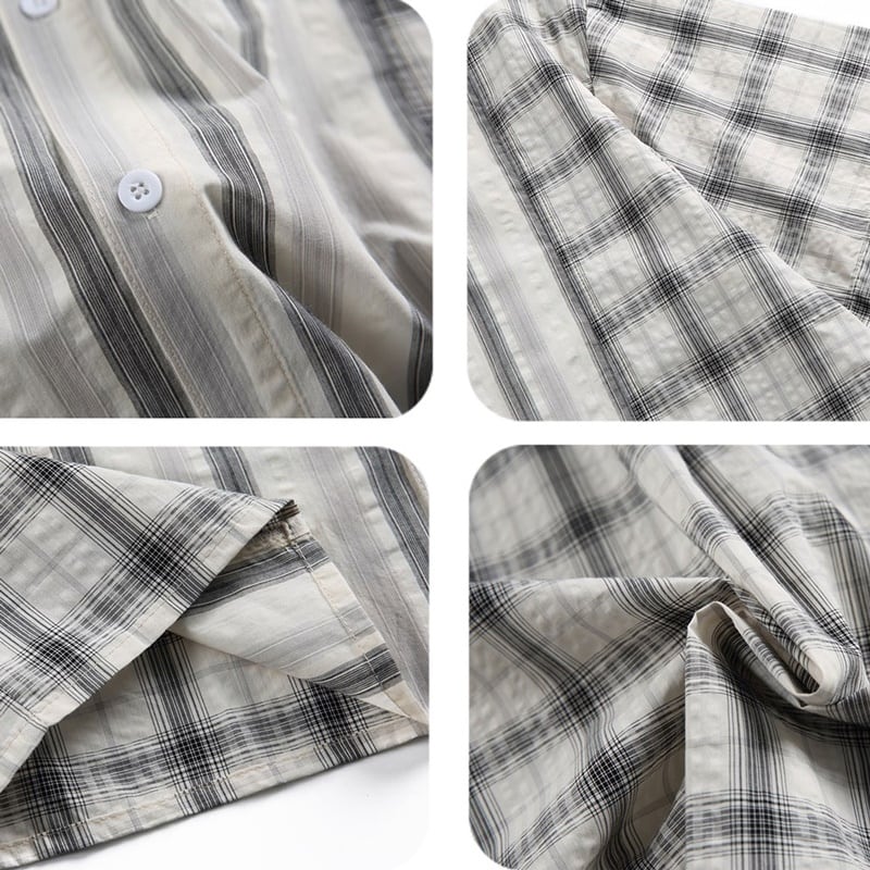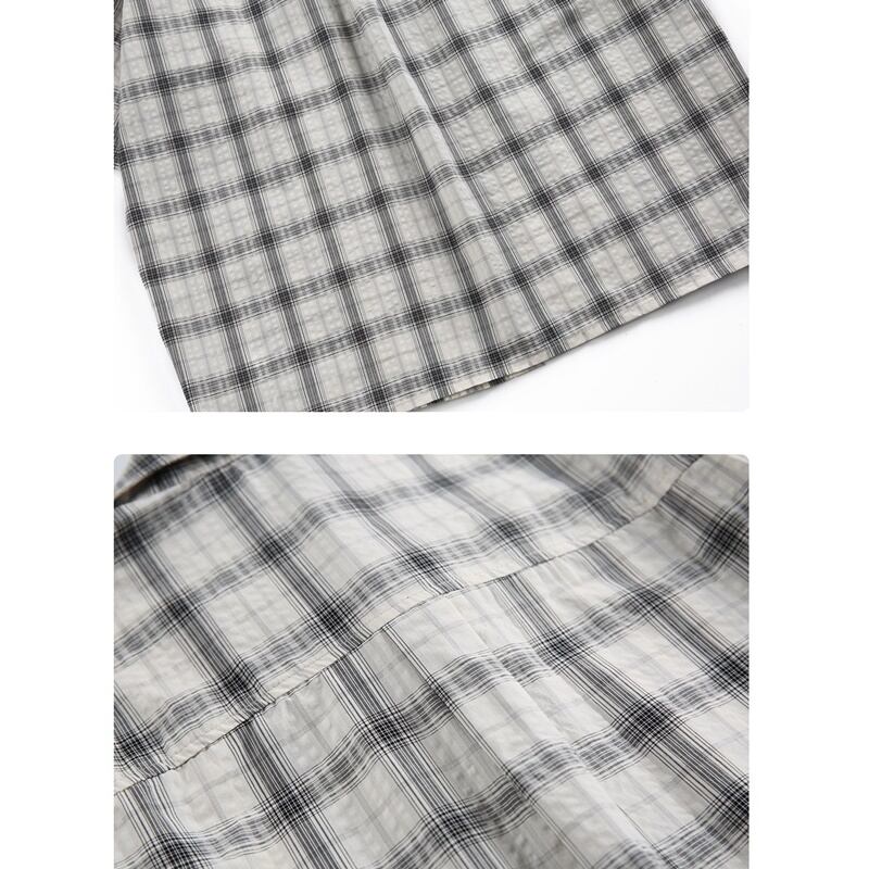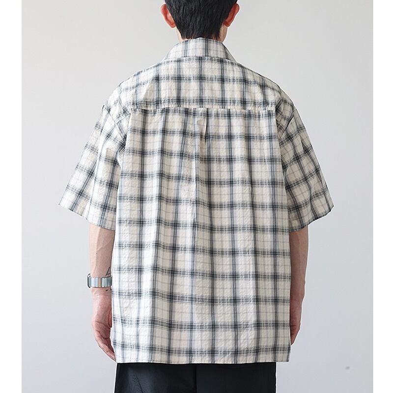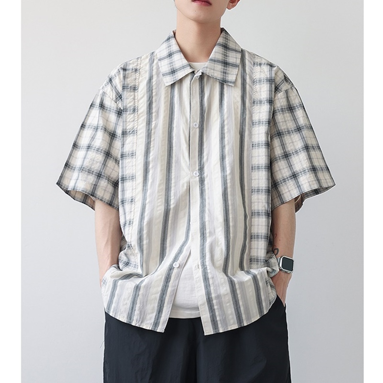 チェック柄とストライプ柄がバランスよくデザインされた半袖シャツ。