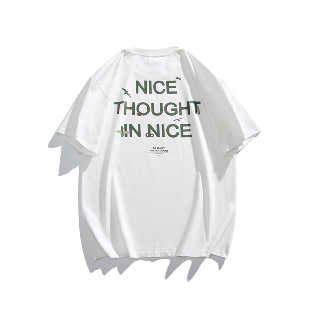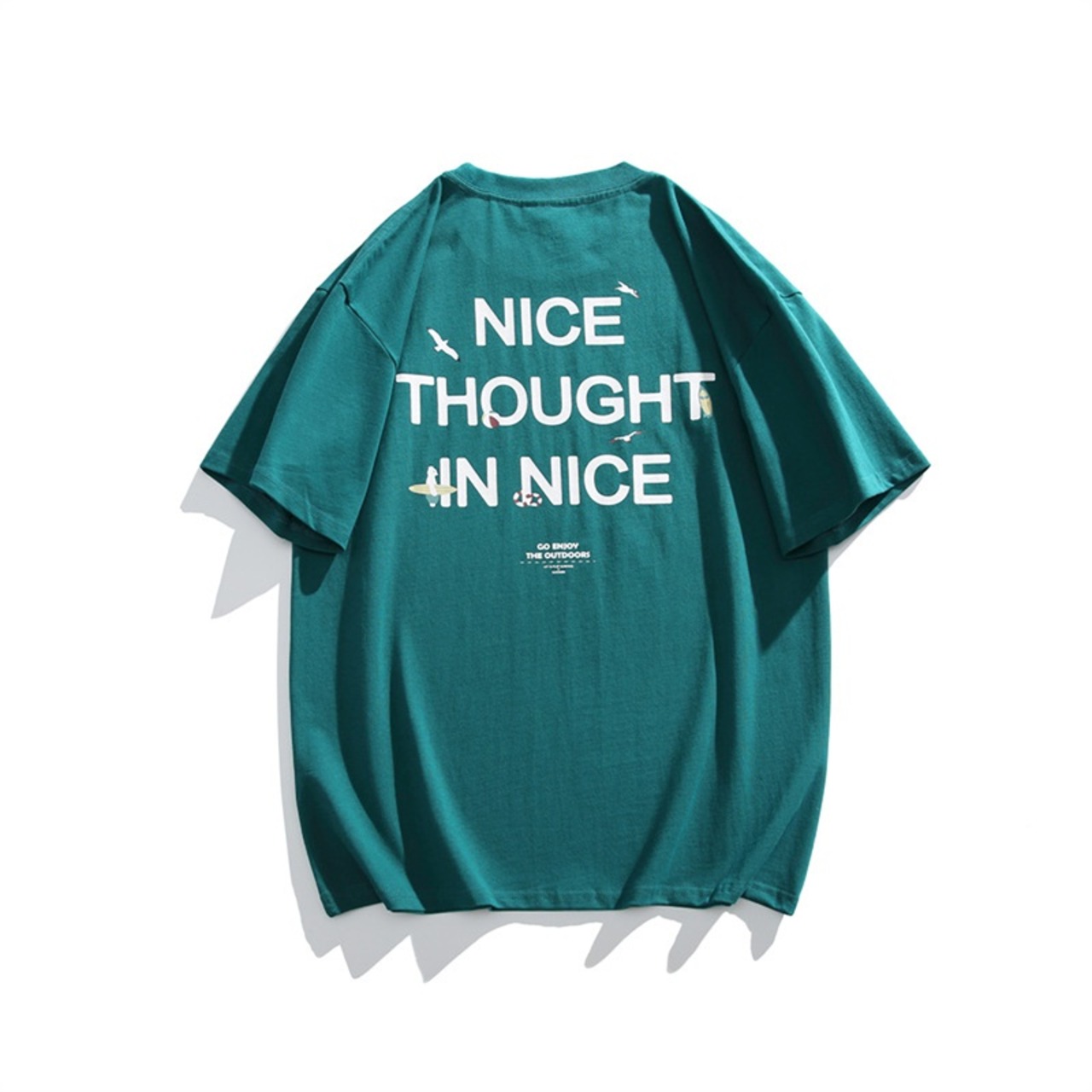 フロントとバック両面にロゴプリントが施された半袖Tシャツ。