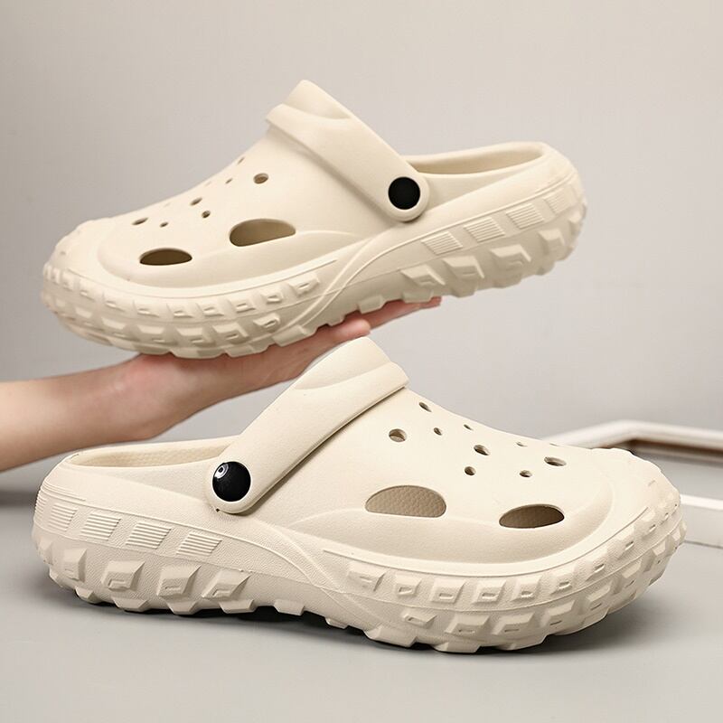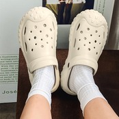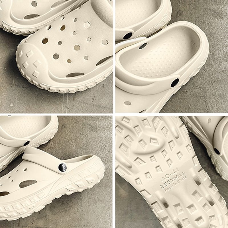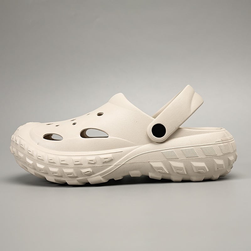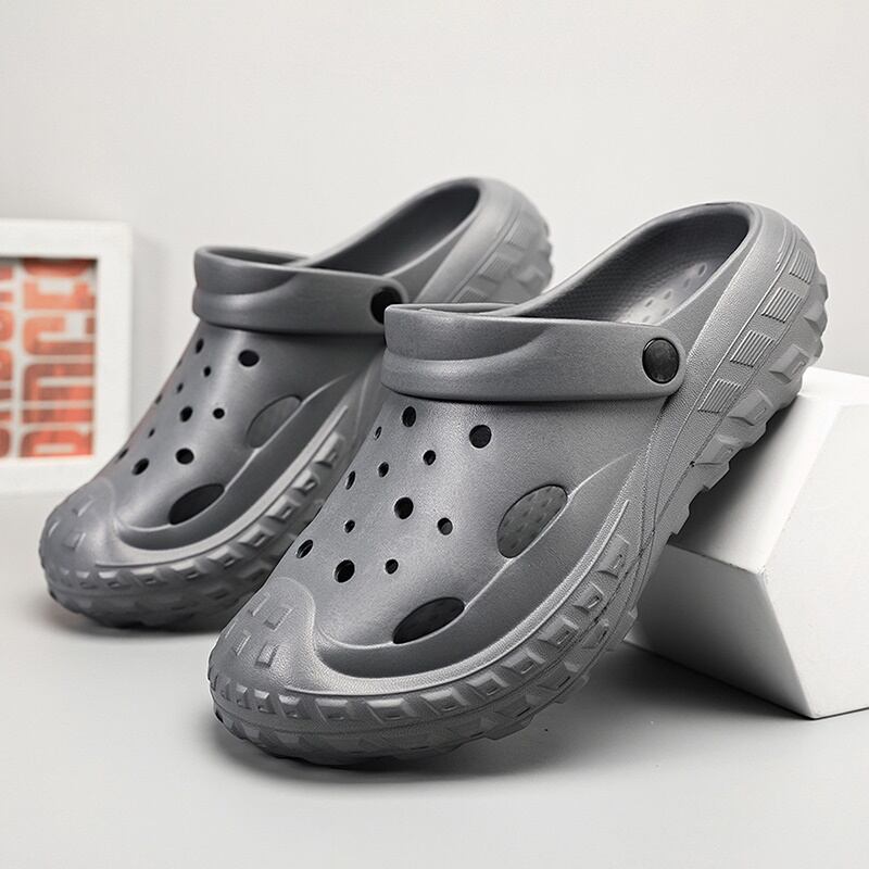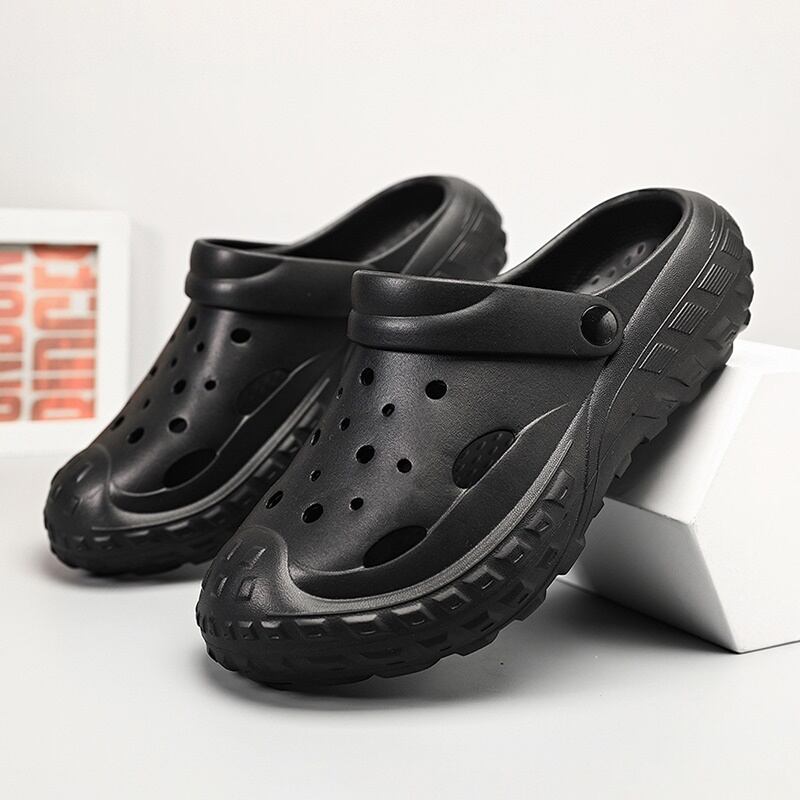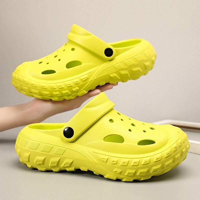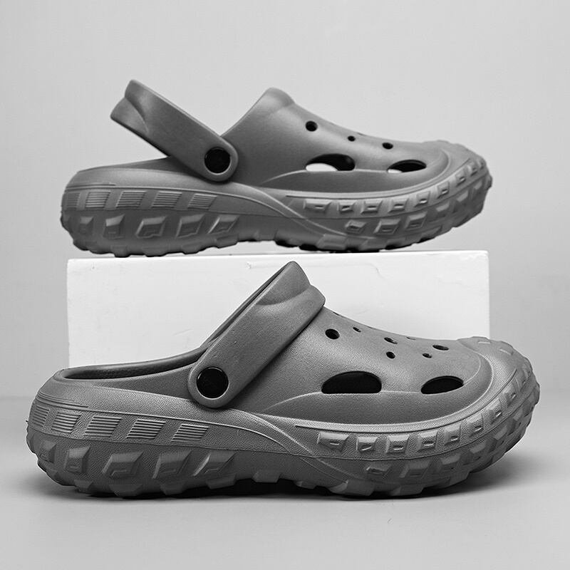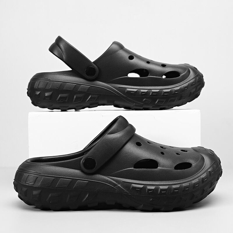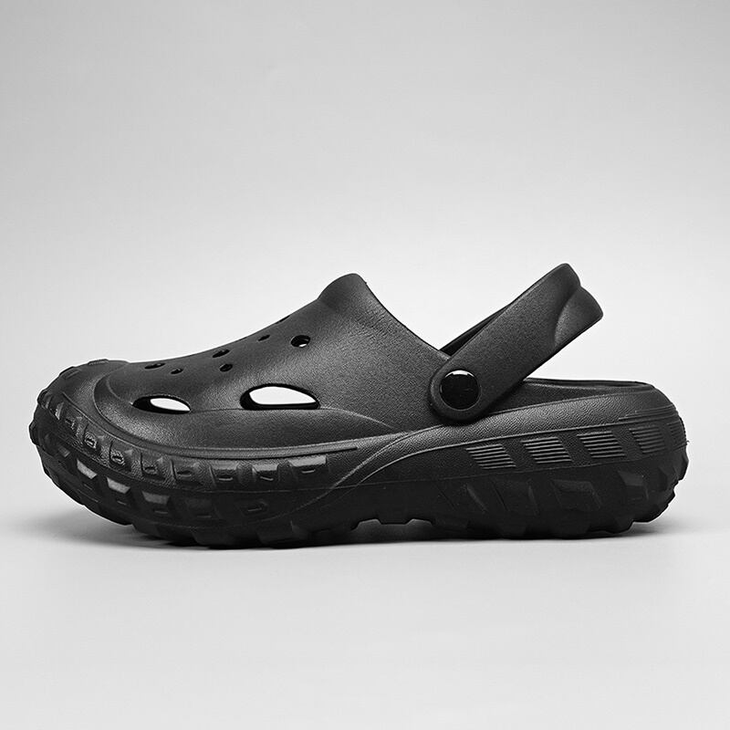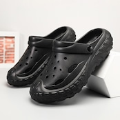 つま先から甲まで覆われた厚底クロッグサンダル。