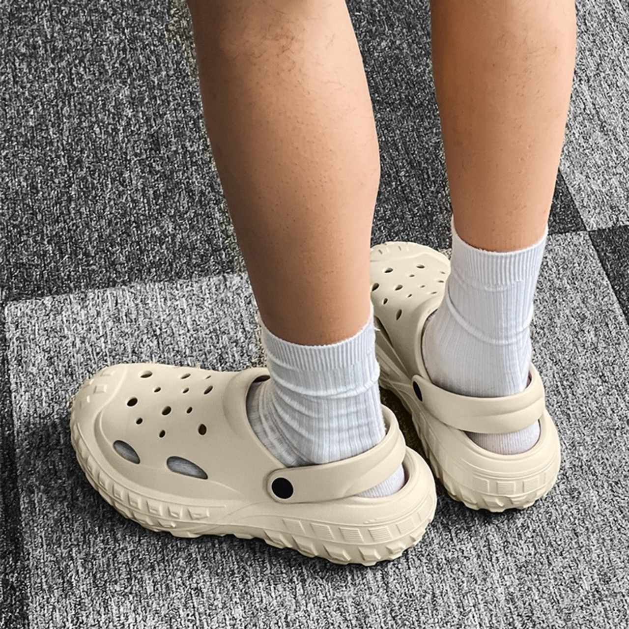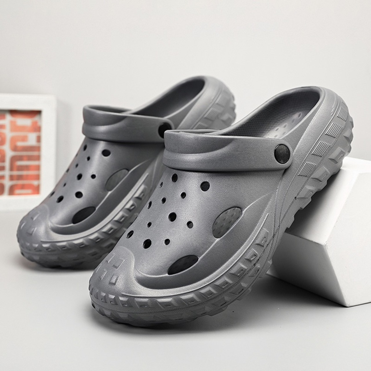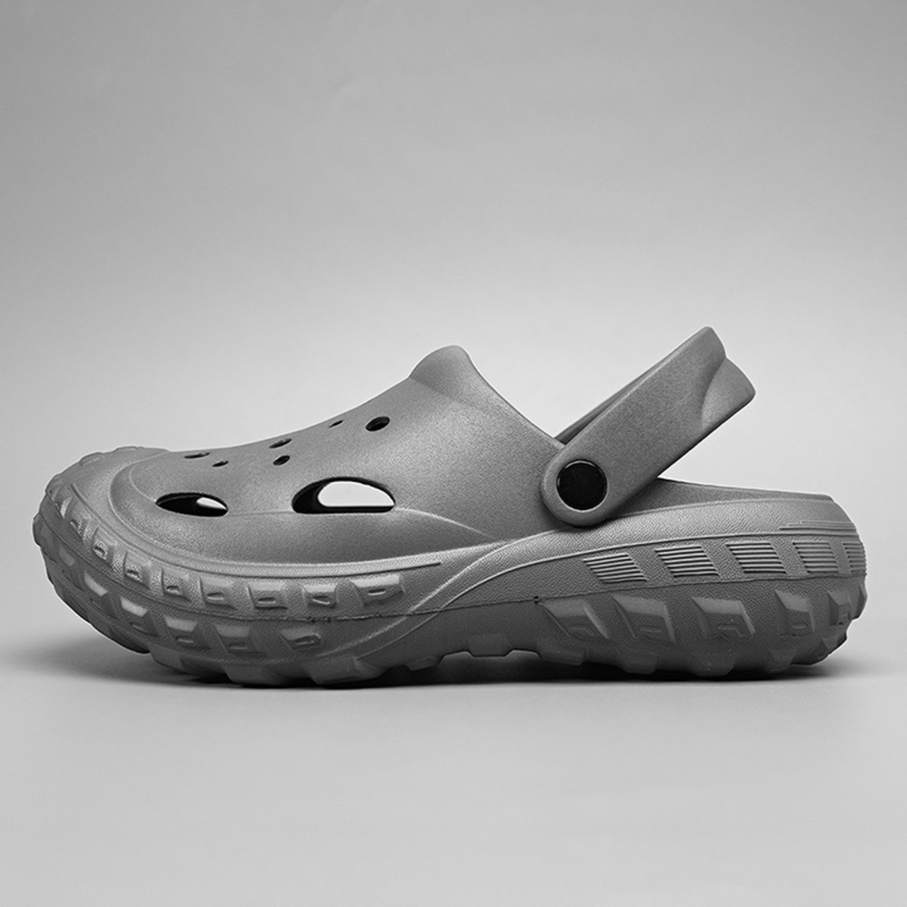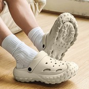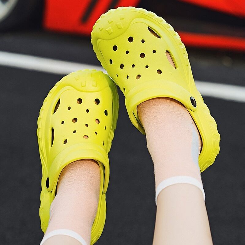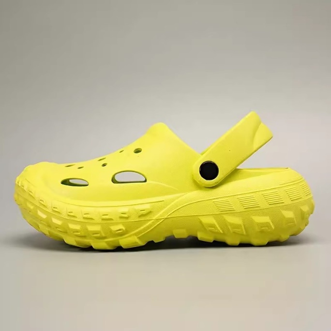 つま先から甲まで覆われた厚底クロッグサンダル。