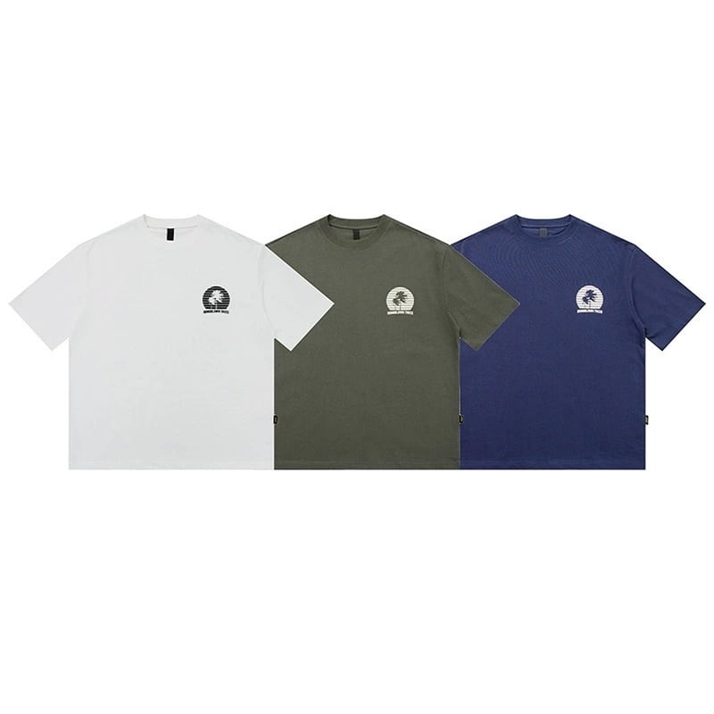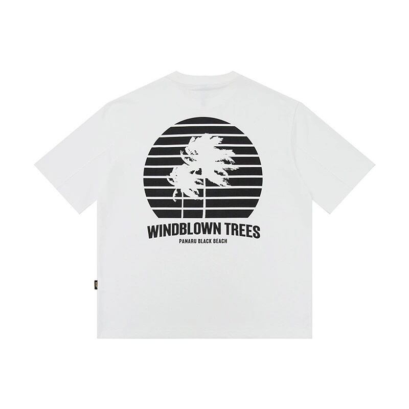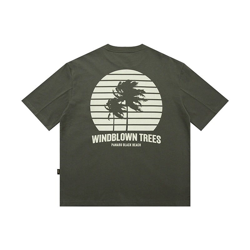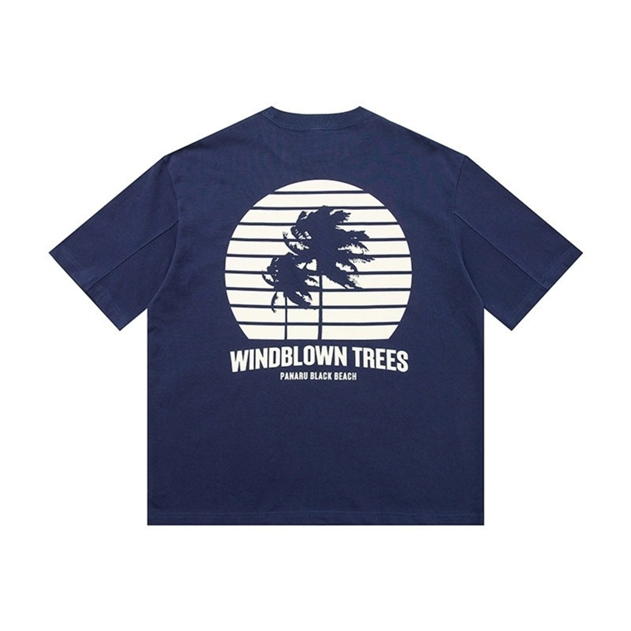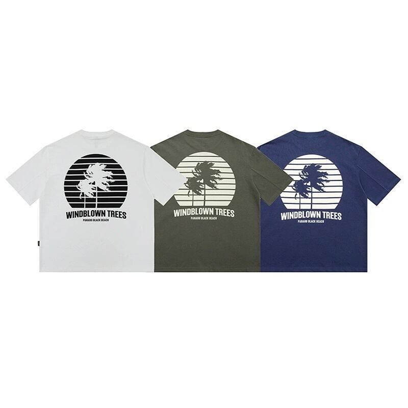 ヤシの木のイラストがハワイアンを強調する半袖Tシャツ。