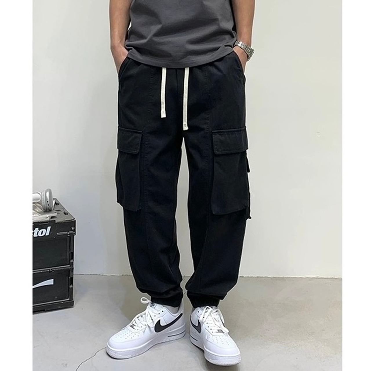 サイドのカーゴポケットのデザインが特徴的なカーゴパンツ。
