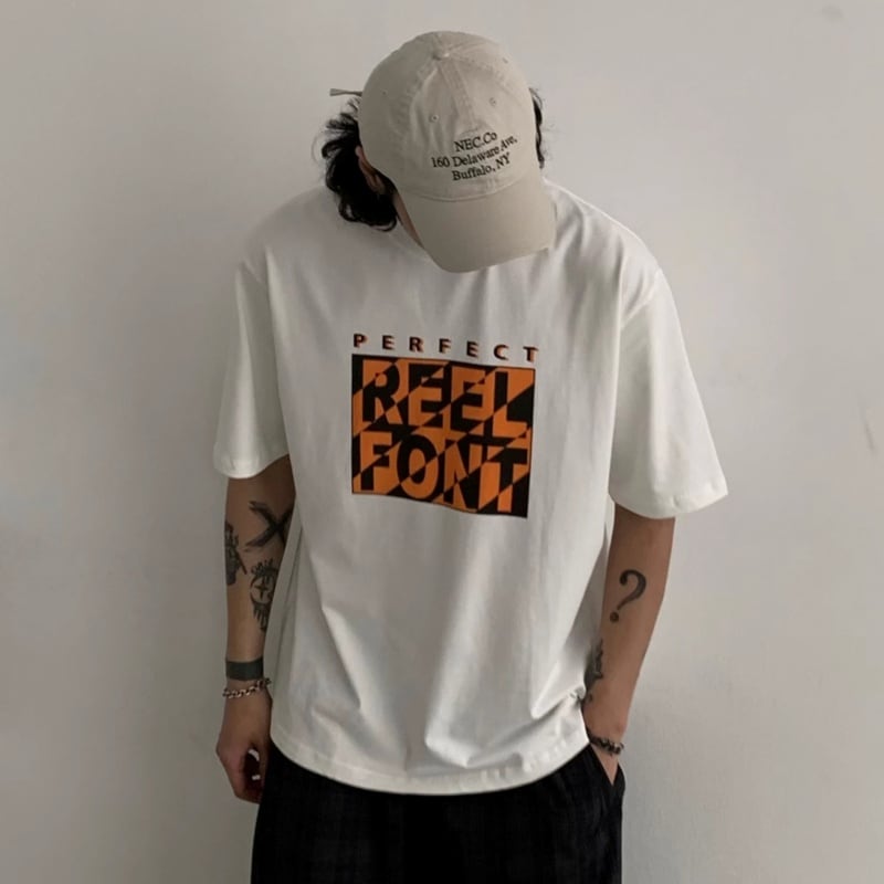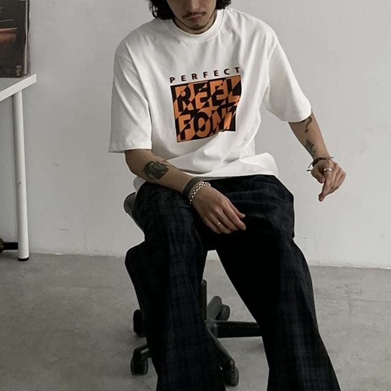 イエロー×ブラックのアートプリントがインパクトある半袖Tシャツ。