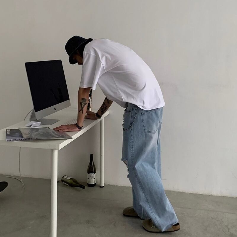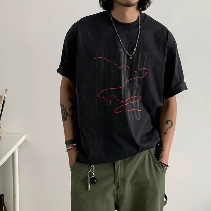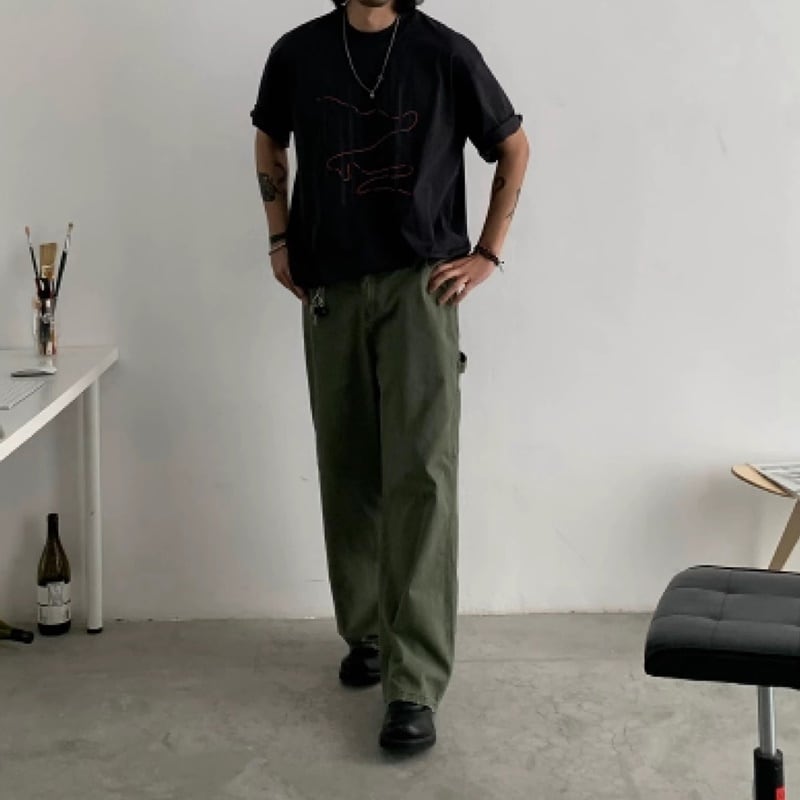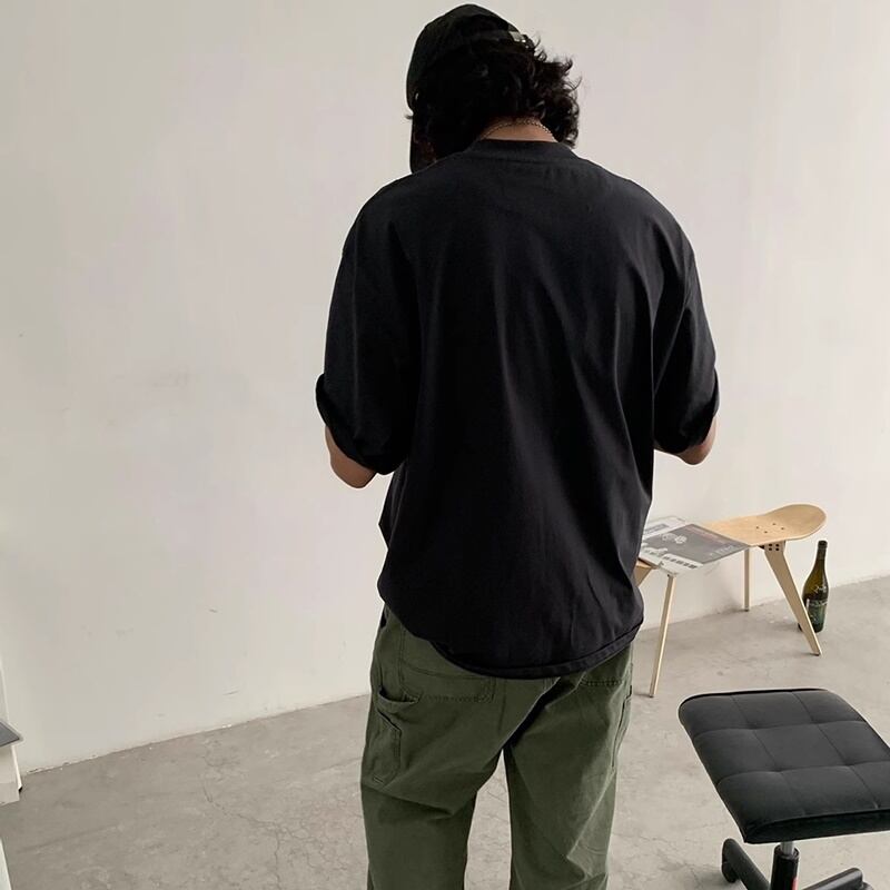 ゆったりとしたシルエットに少し詰まった襟とのバランスが好相性な半袖Tシャツ。