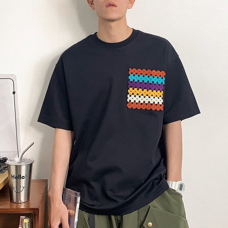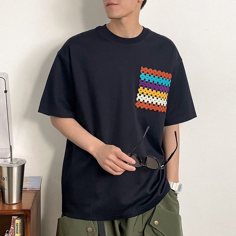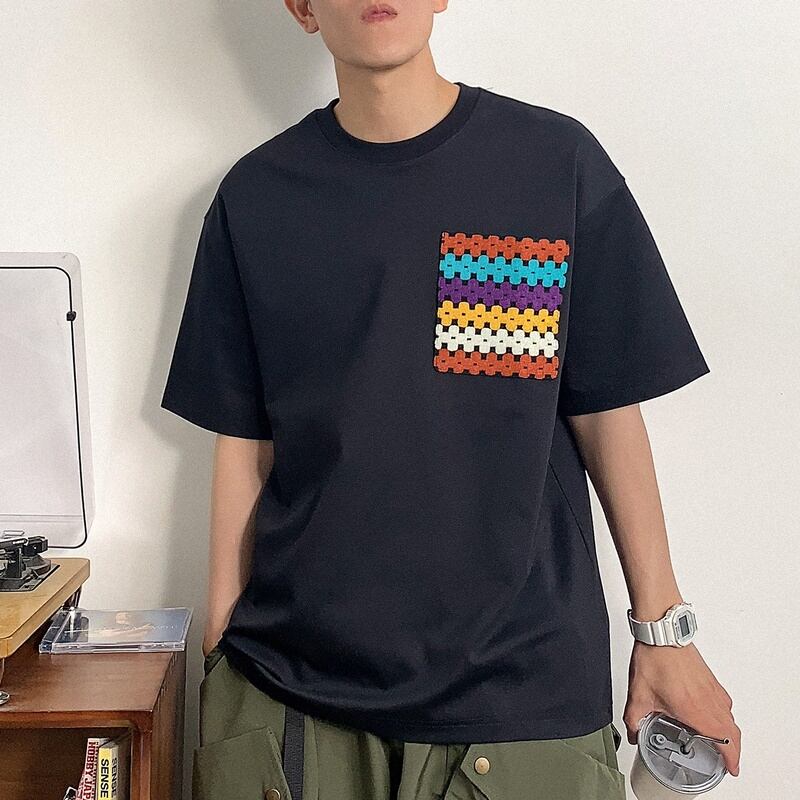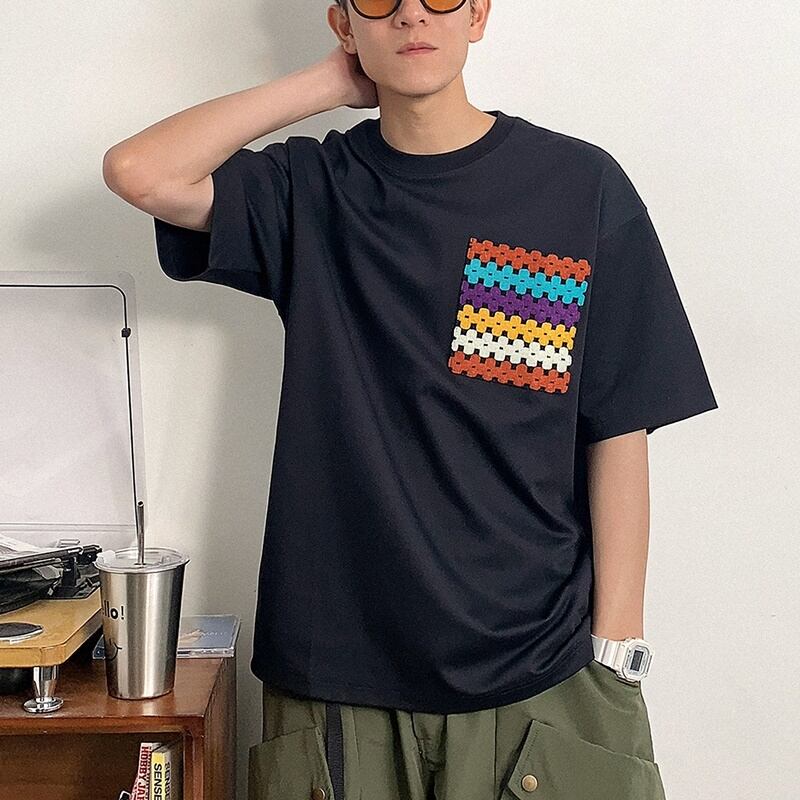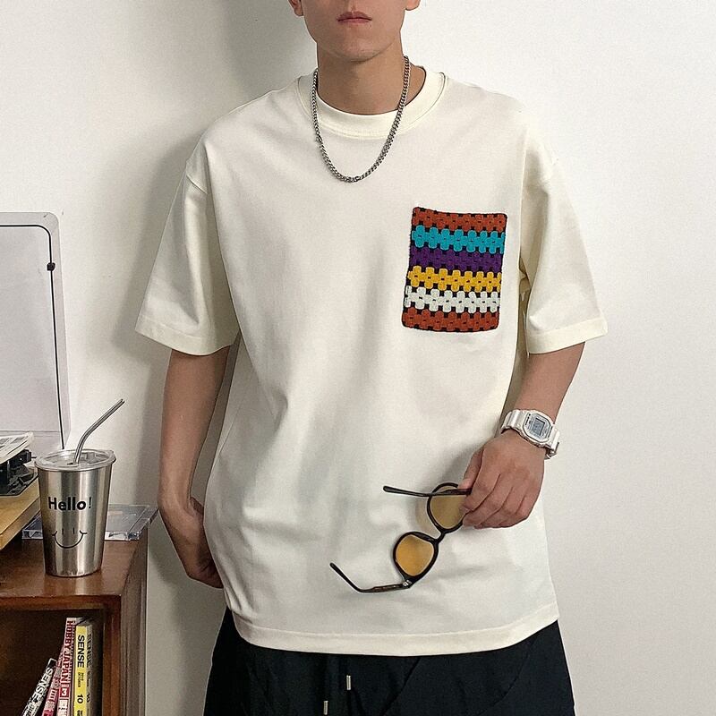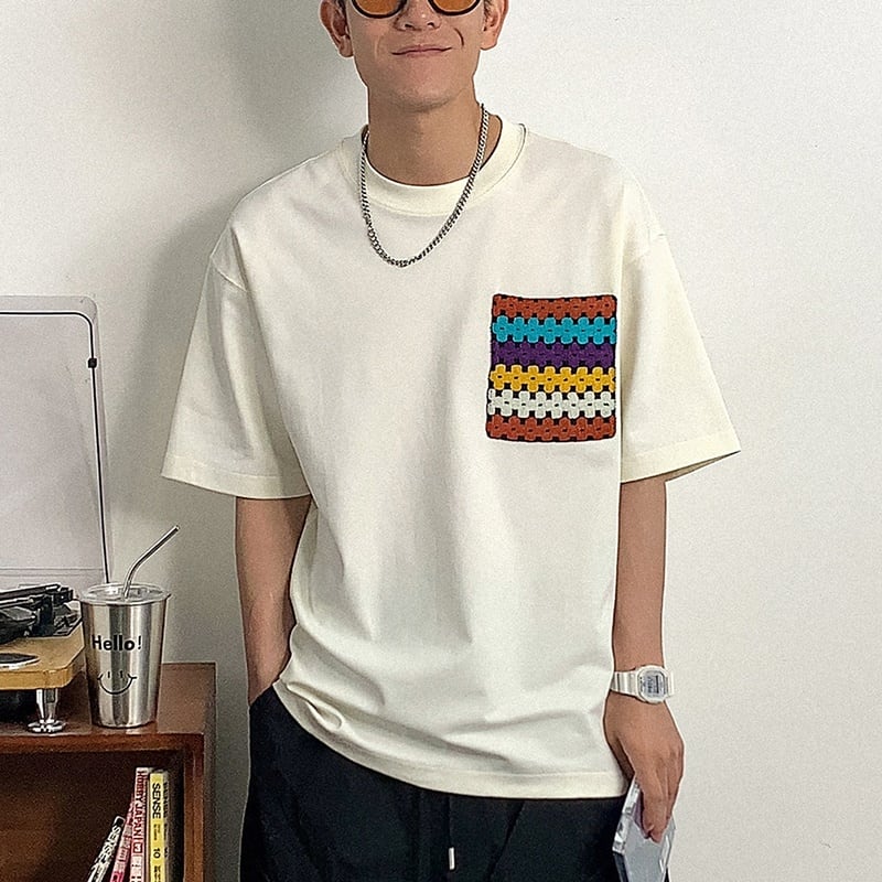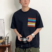 ベーシックなカラーにヴィヴィッドカラーのプリントが映える半袖Tシャツ。