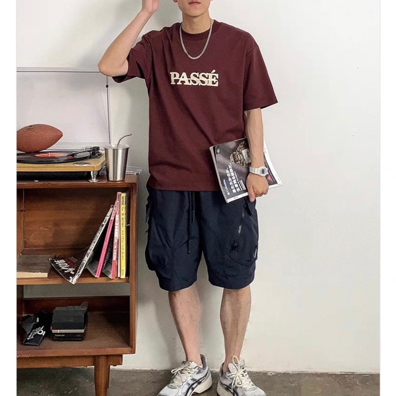 バックスタイルの英字プリントが目を引く半袖Tシャツ。