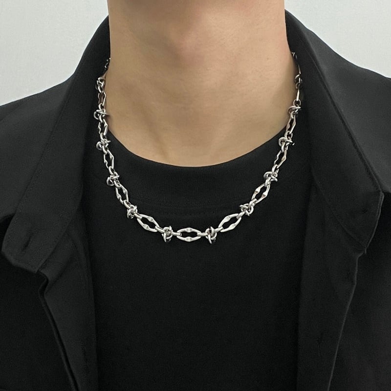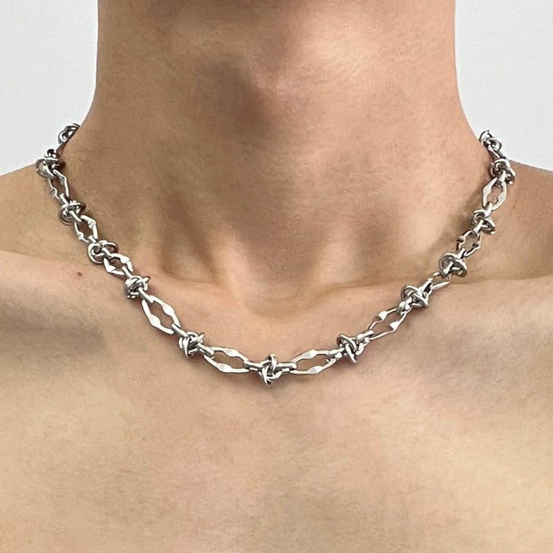 いばらのモチーフを立体的につなげたチェーンネックレス。