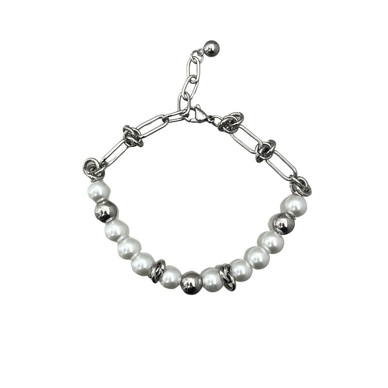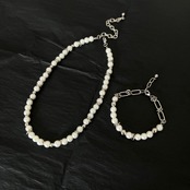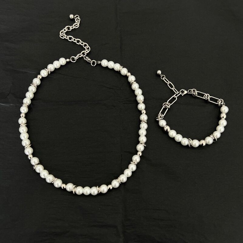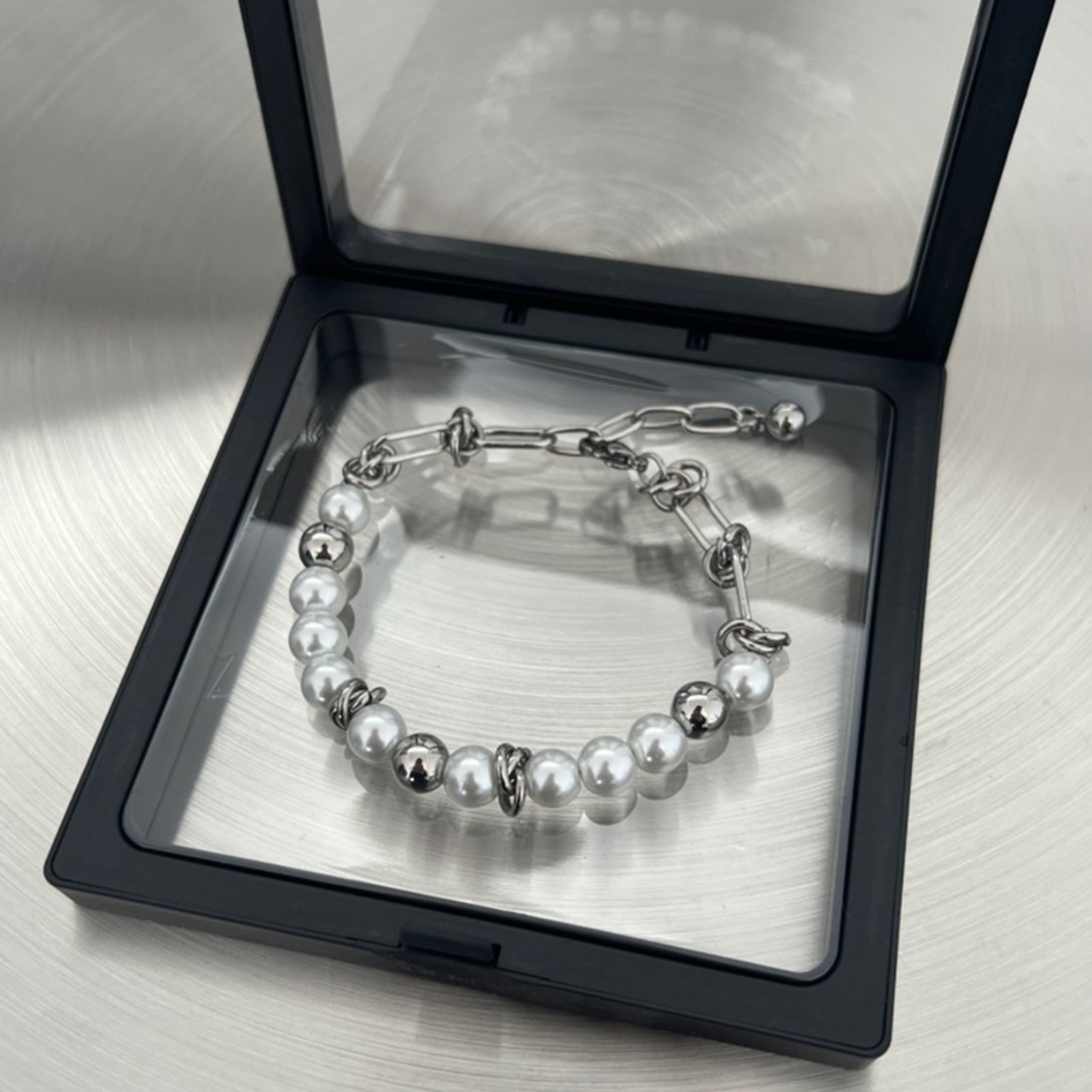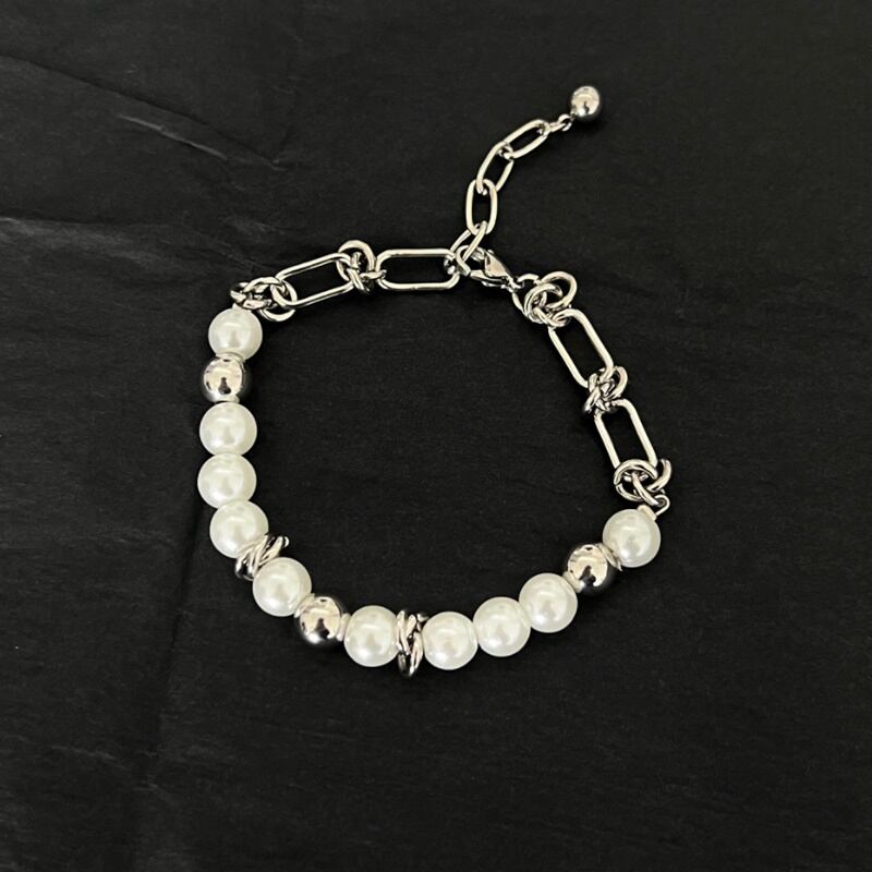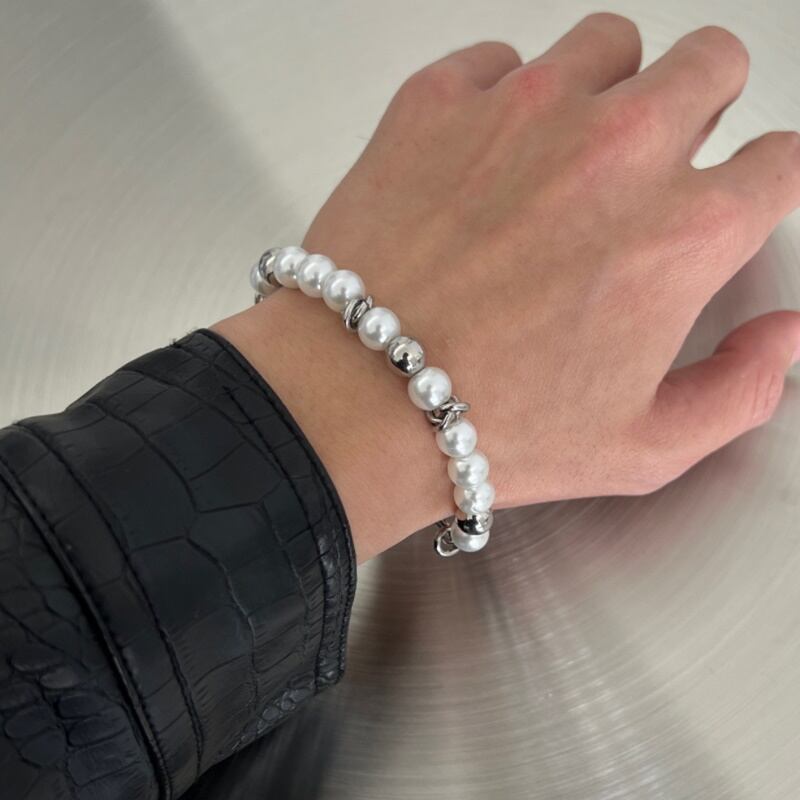 パールの存在感と程よいハード感の組み合わせがコーディネートのアクセントに抜群です!